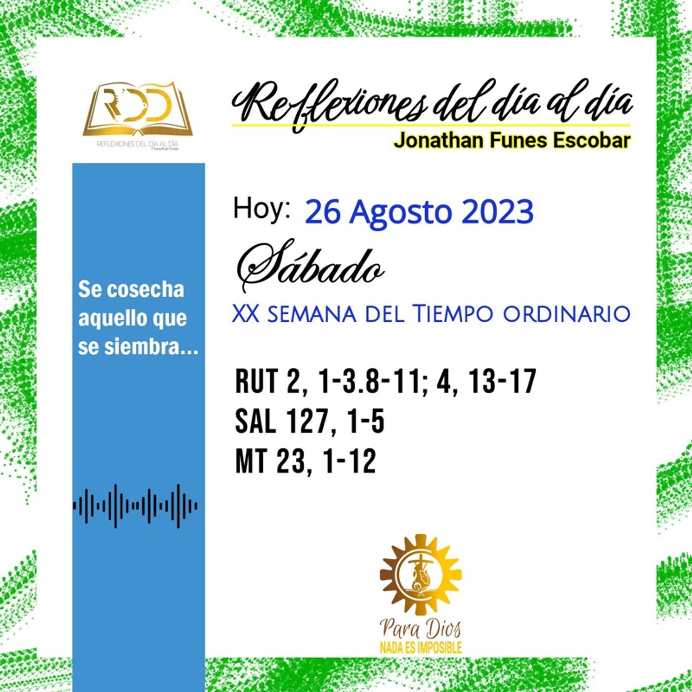 Dios nunca se queda con nada reza una antigua frase y eso es cierto el Señor siempre ve nuestros esfuerzos conoce nuestras acciones y siempre está ahí para respondernos. Hoy desde el ejemplo de Rut nos damos cuenta que cuando hacemos las cosas con el único deseo de ayudar Dios mismo nos ayuda también a nosotros por otra parte...