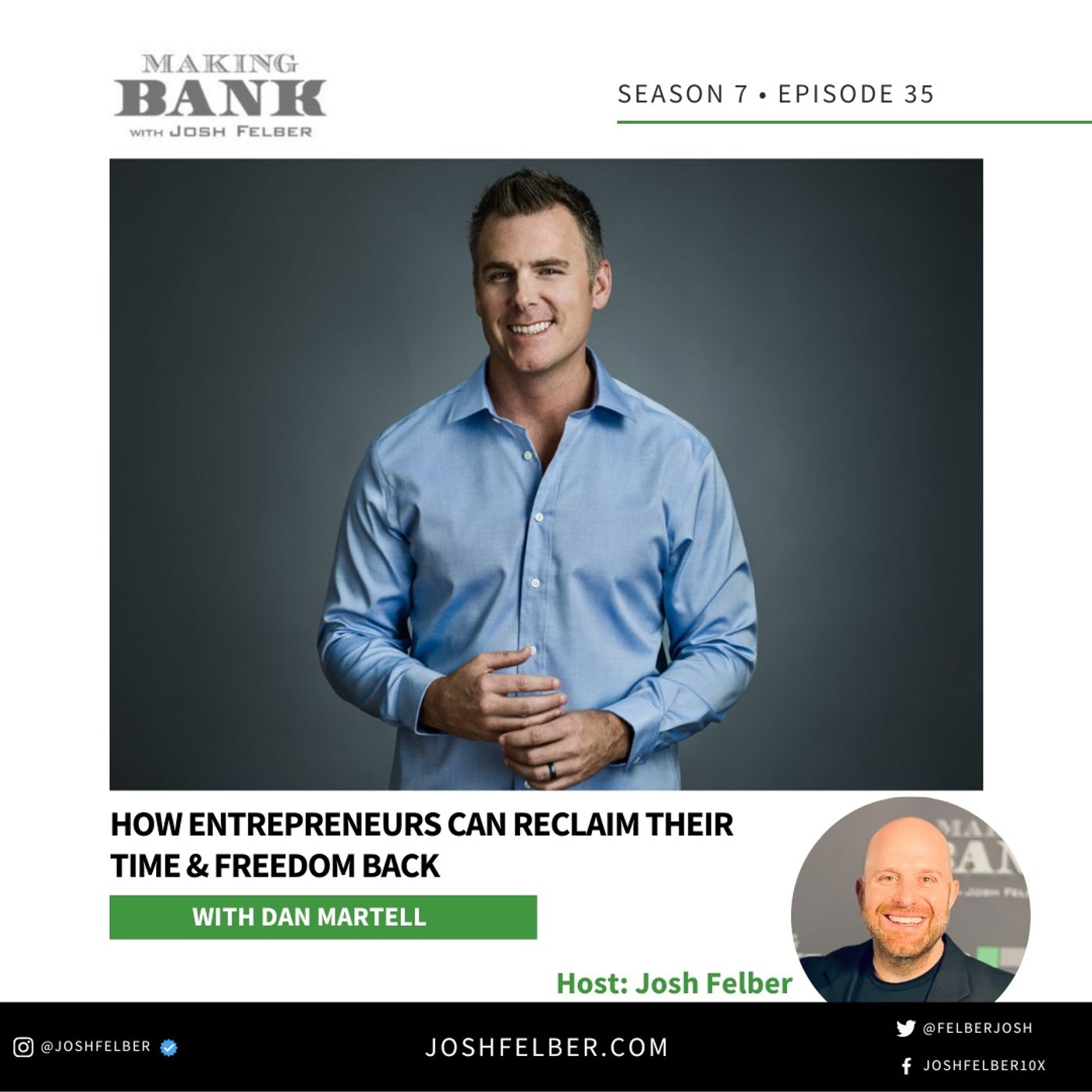 How Entrepreneurs Can Reclaim Their Time & Freedom Back #MakingBank #S7E35 Welcome back to Making Bank. On today's episode, we have Dan Martel who is an entrepr3eneur, angel investor and he became a highly sought after coach in the SAS industry after exiting three tech companies within a 10 year period. He's also an athlete and Ironman philanthropist, husband, father of two boys, and lives an amazing life that he's created for him. Make sure you check out this episode of Making Bank with Dan Martell. (3:29) Increasing Life Quality Most of us have the tendency to overwork and really commit ourselves that we lose our most precious resource. Time. That is why many fail to withstand the pressure life throws at them. It is important to get back your time and never lose it because if you can buy back your time, you can definitely increase your quality of life and performance as a whole. (6:54) Time Assassin The most common time assassins are the Self Medicator, the Saver, the Supervisor and the Staller. All these different attributes exist as individuals in a business and they really have the tendency to slow down or interrupt the growth of a company and workflow as a whole. (12:07) Time Worth If you do anything that you could have paid somebody else, that buyback rate or less, you're literally working against yourself. You can't build a $10 million company off a $10 task. There's not enough hours in the day. And also instead of hiring more people so you should hire people that will help buy back time out of your calendar. (14:52) Buy Back Time Instead of hiring two people to do multiple things thinking it will be efficient, it's better to just give the most valuable employee more roles to take because one efficient employee is better than having two of them doing tasks that can be easily done alone. This is how you buy back time efficiently. (17:08) Hiring Order The hiring order is Admin, then Delivery, then, Marketing and then Sales. These should be the order of hiring in order for a business to prosper. If the order is changed, the flow won’t be effective anymore. They have to be in this order. (20:00) Zero Inbox Dan Martell talks about how he follows a zero inbox policy. He doesn’t do emails. Doesn’t do inbox. He sends voice messages because most people don't realize that our typing speed versus our talking speed, our talking speed is way faster and it will be clearer and it will save more time. (21:30) Playbook A playbook is a very important part of handling a business that most CEOs do not even follow. It is important because it has all the necessary guidelines to run the business and also for every employee to be able to follow the guidelines. If it's not followed the business will just crumble and the employee might just lose a spot in the company. Links: @Danmartell @danmartell www.buybackyourtime.com