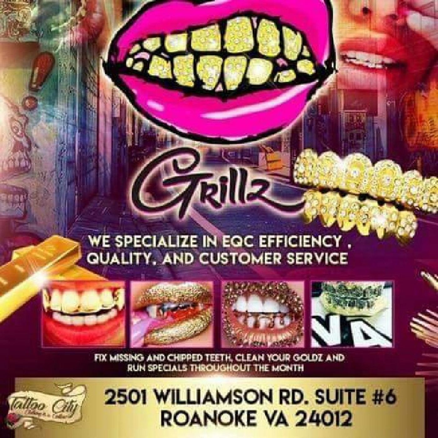 Rig DaBuilder kicking it wit Fiyah Grillz at Fiyah Grillz Custom Gold Grill Shop in Roanoke, Virginia! Have you been looking to to get dipped in Gold? Come in and get your Mold at 2501 Williamson Rd Suite 6 Inside Tat2City! Fiyah Grillz.