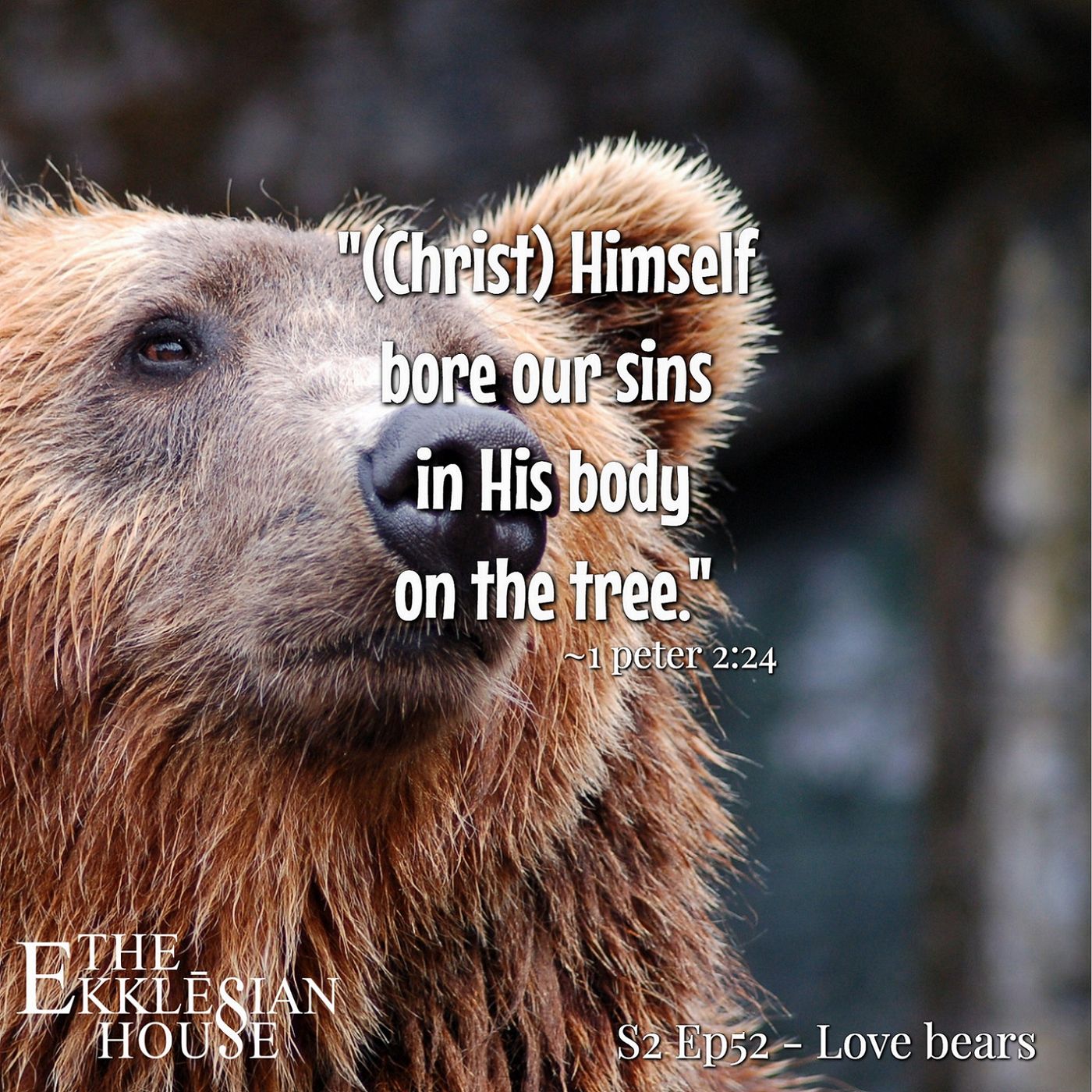 Now, Jesus did a lot when He lived, but in sticking with the message of this episode, “Love Bears,” let’s look at 1 Peter 2:24 CSB, “[24] (Christ) himself bore our sins in his body on the tree; so that, having died to sins, we might live for righteousness. By his wounds you have been healed.” Love bears, and wheh, that’s quite the bear taking on all the sin in the world for all time. This, this is the love we should have for fellow believers, but we can’t exactly take on each-others sin. Right?