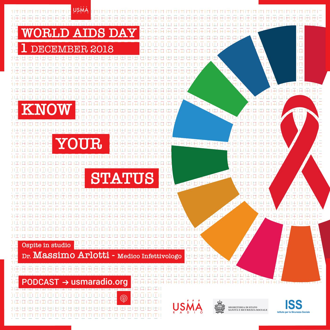 Un podcast che mira ad approfondire alcune nozioni e a illustrare le buone regole di prevenzione che negli ultimi tempi sono passate in secondo piano per il leggero attenuarsi della diffusione del virus. Il messaggio scelto quest’anno in occasione dei 30 anni dall’istituzione della giornata è “Know your status”, ovvero “conosci la tua condizione”.