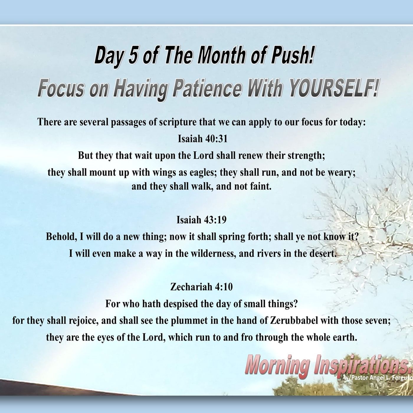 Join Pastor Angel L Ferguson each week for words of encouragemt through the Holy Inspired Word of God.