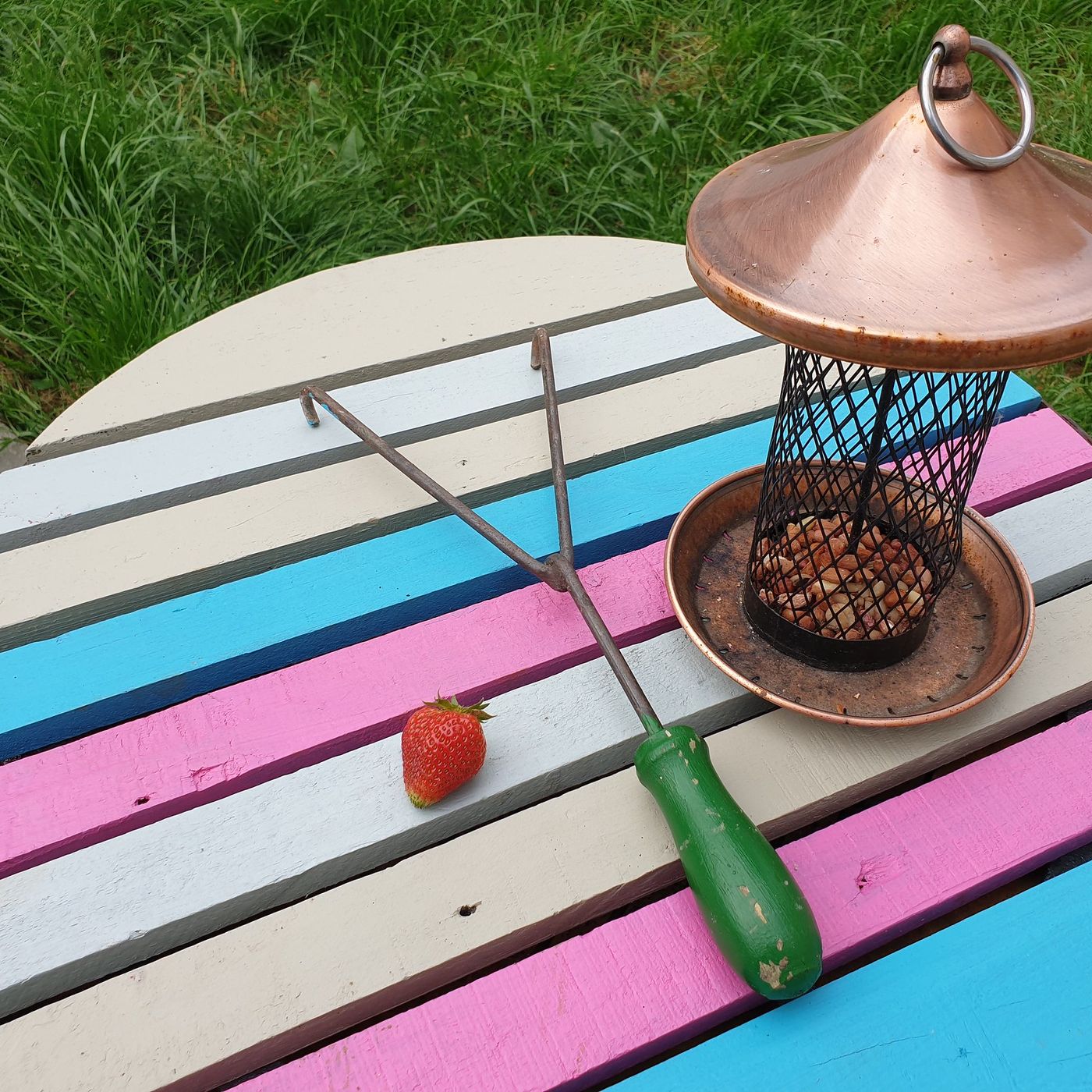 I'm watching four different types of birds enjoy the feeders hanging in our back garden as I munch on the first strawberry I've harvested from one of our window boxes. I need to share more about our back garden during another audiomo segment and on https://underway.ie because there are plenty of stories associated to the images of our back yard space that I've shared inside https://bit.ly/flickrashgrove