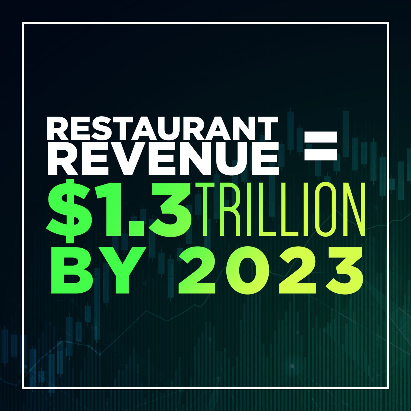 Can restaurant revenue hit $1.3 Trillion by 2023? The restaurant industry (justifiably) is undervalued significantly due to COVID, bad PR, and the volume of closures. This might mean the opposite of an implosion, we may begin to see record growth occurring in the market. With marketing-driving big companies targeting retail consumers, virtual/ghost kitchen restaurants, and food tech innovations this might signal a massive growth period by 2023.
