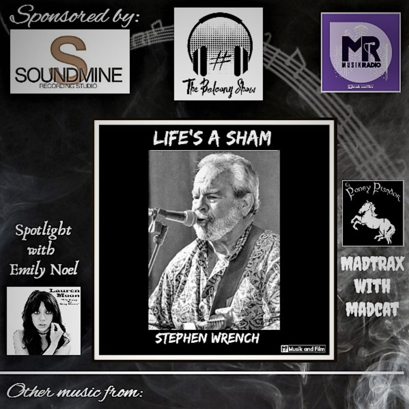 In this episode of The Balcony Show, We are honored to bring you music and an interview with the legendary Stephen Wrench Music! Playing with some of the most infamous bands all of his life Stephen has now released a brand new single "Life's A Sham". Lauren Moon is in our Spotlight with Emily Noel and El Pony Pisador is on deck for MADTRAX with your dude of awesomeness "MADCAT" Mark Capone ! We have another great Pro Tip from Bo Sommer, and some really great music as well! This week's hashtag?
