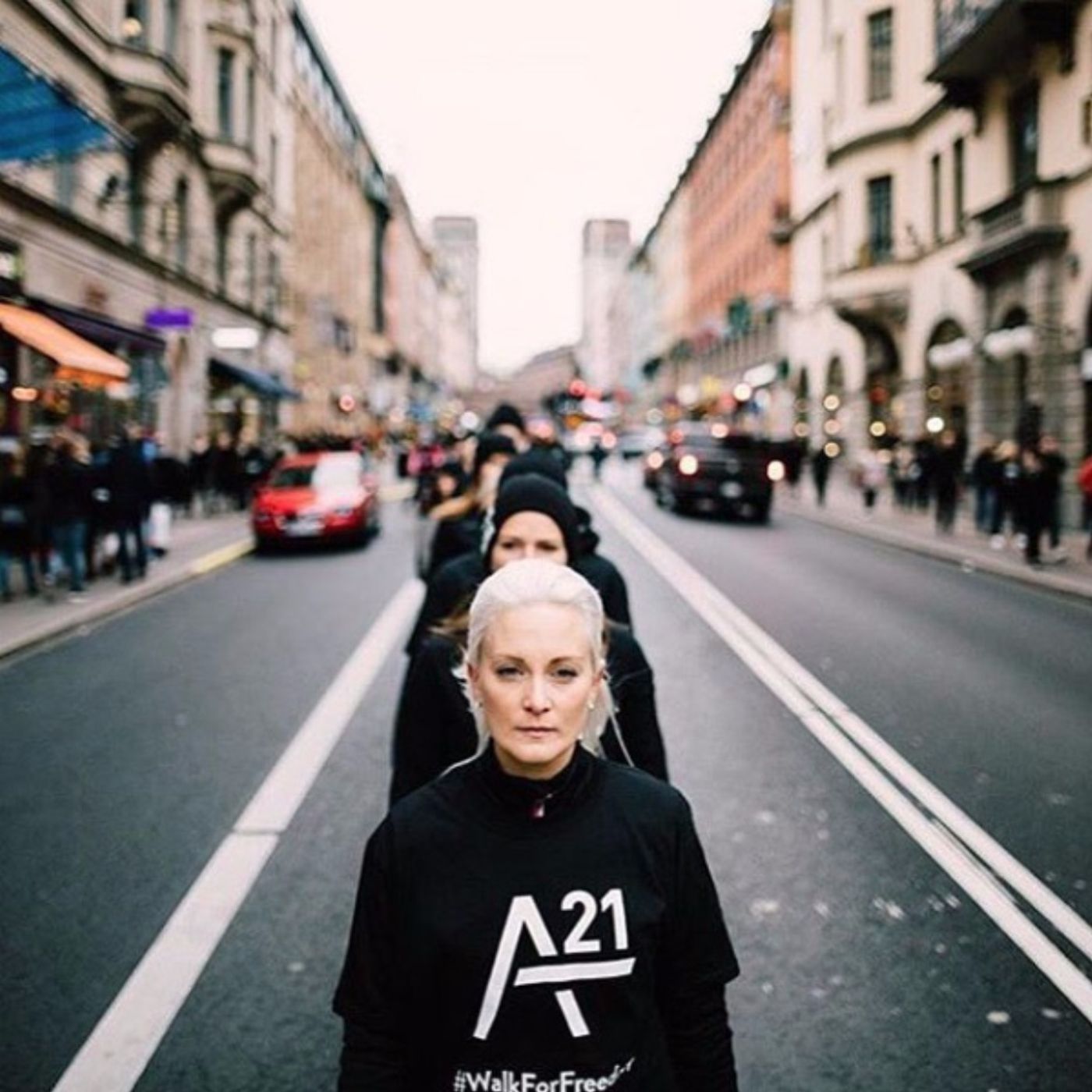 Lovisa Njord Johansson, daglig leder i A21 Norge, forteller om hvorfor mennesker i Norge og globalt går i lange rekker gjennom byen lørdag 20.oktober.