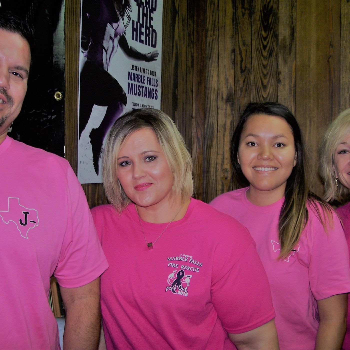 For today’s “JBar Weekend Report,” JBar Contractor’s Services’ Abraham Santillan (left) and the Marble Falls/LBJ Chamber of Commerce’s Brandi Payne, Anabel Castillo, and Patti Zinsmeyer posed for a photo in their pink shirts (today is Pink Out Marble Falls), and we talked about some of the happenings coming up in the next few weeks, including Market Day on Main. Go to marblefalls.org for more information.