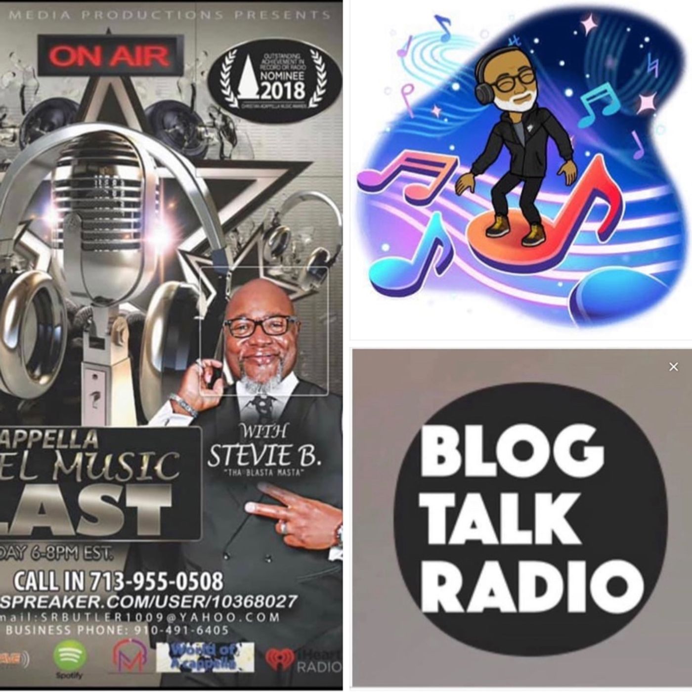 Stevie B. is playing the world's greatest acappella gospel music artists; the sweet sounds of voices.