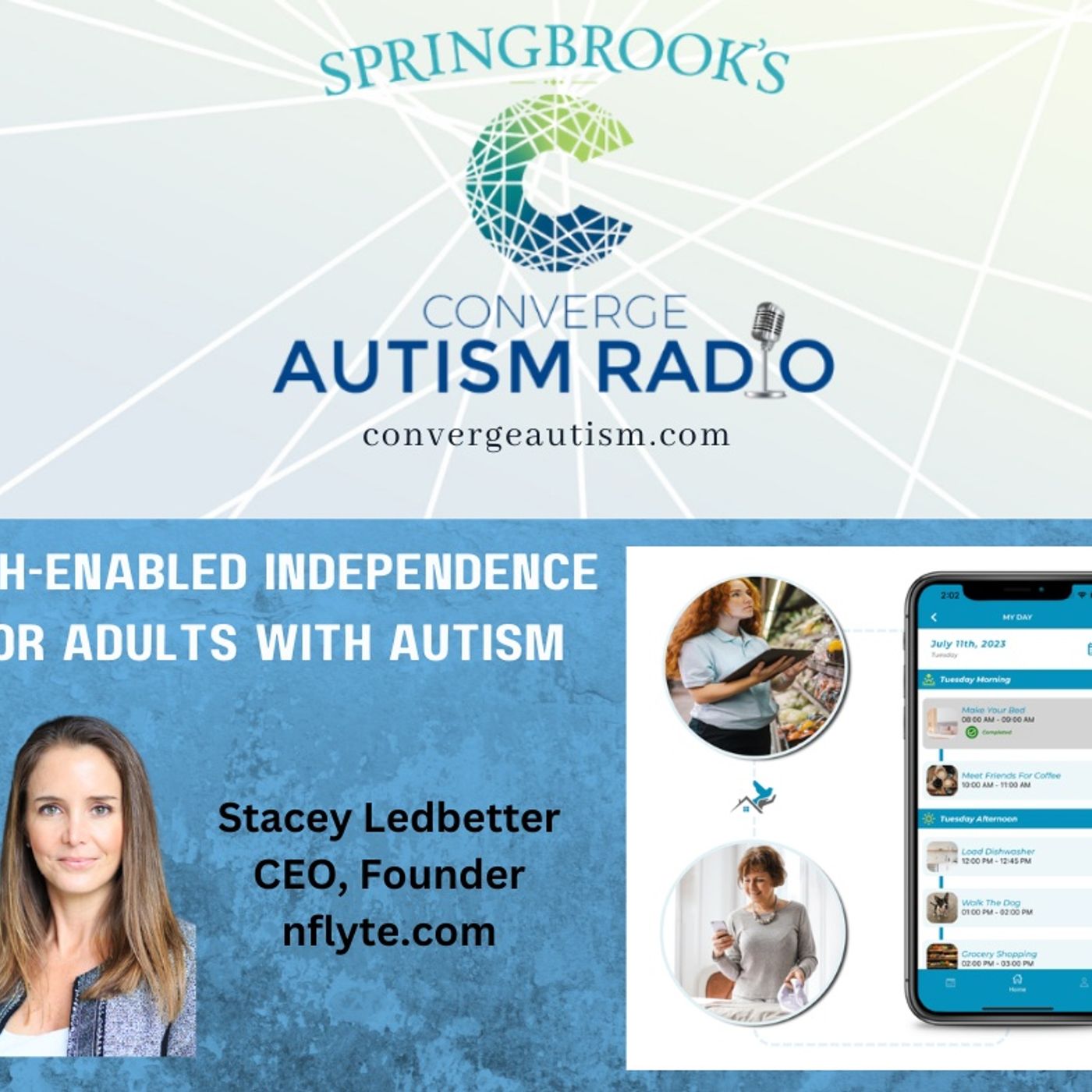 Join Kristin and Stacey Ledbetter, CEO and Founder of NFlyte. The organization and software was born out of the founder’s personal need for an app to help her teenage autistic daughter navigate the path towards independence. Before NFlyte, there was not a solution in the market that served neurodiverse young adults—helping them stay on task and enable families to be connected and track progress without being overbearing in their lives.
