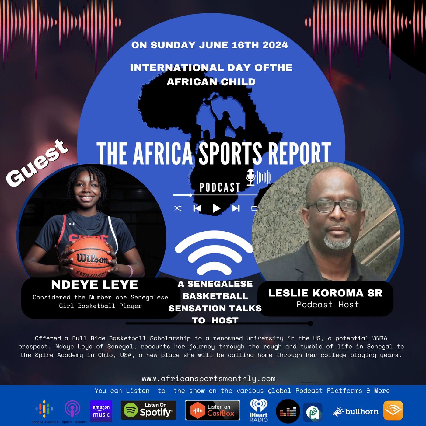 Ndeye Leye, the current top Senegalese female basketball player, sits down with host Leslie Koroma Sr. to discuss her basketball scholarship to a prestigious university in the US. She shares her journey from Senegal to the Spire Academy in Ohio, USA, and her upcoming college basketball career. Stay tuned to discover which university Ndeye will attend in the fall and her aspirations for her basketball career during and after college.