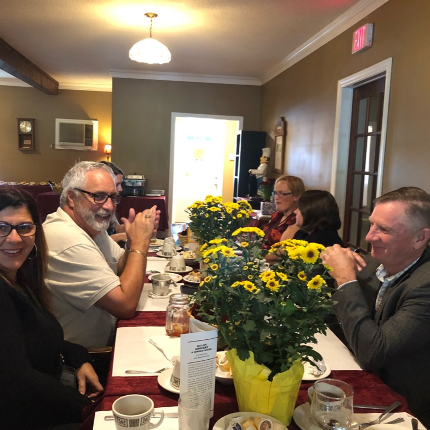 Discussing the future business opportunities at the Business of The Year luncheon for Elizabethtown Kitley Economic Development Committe