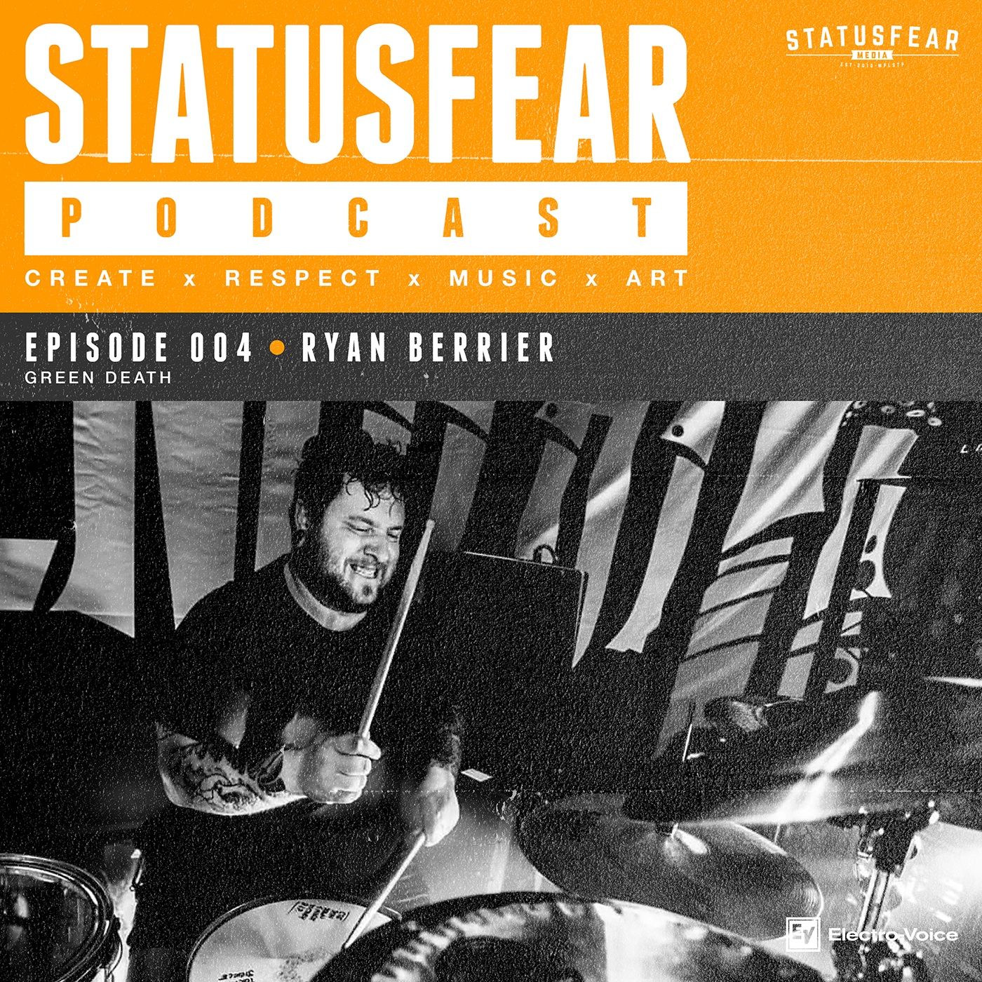 Episode 004 of the Statusfear Podcast features drummer Ryan Berrier of the band Green Death from Des Moines, IA. From house shows to overseas festivals, we go back in time through Ryan’s history with notable Iowa bands Marcato, Destrophy, and Index Case, as well as playing in a project with Slipknot’s Corey Taylor. We also get into Ryan’s current band Green Death, and their monster new release “Hallowmass”, partnering with Megadeth bassist David Ellefson on the recently resurrected, iconic metal label Combat Records. | This episode of the Statusfear Podcast is brought to you by RiverRock Studios in Minneapolis, MN. | The Statusfear Podcast proudly uses Electro-Voice microphones.