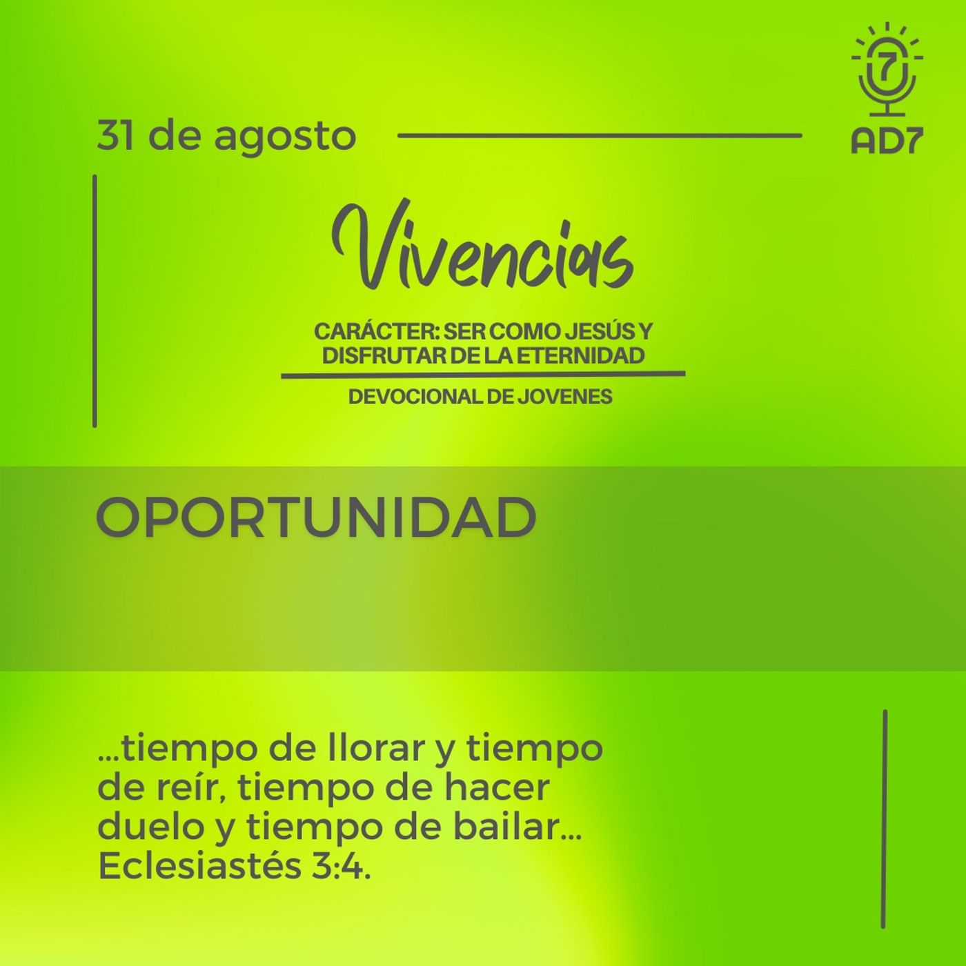 Oportunidad | Devocional de Jovenes | 31 de agosto 2023 | AD7Devocional |