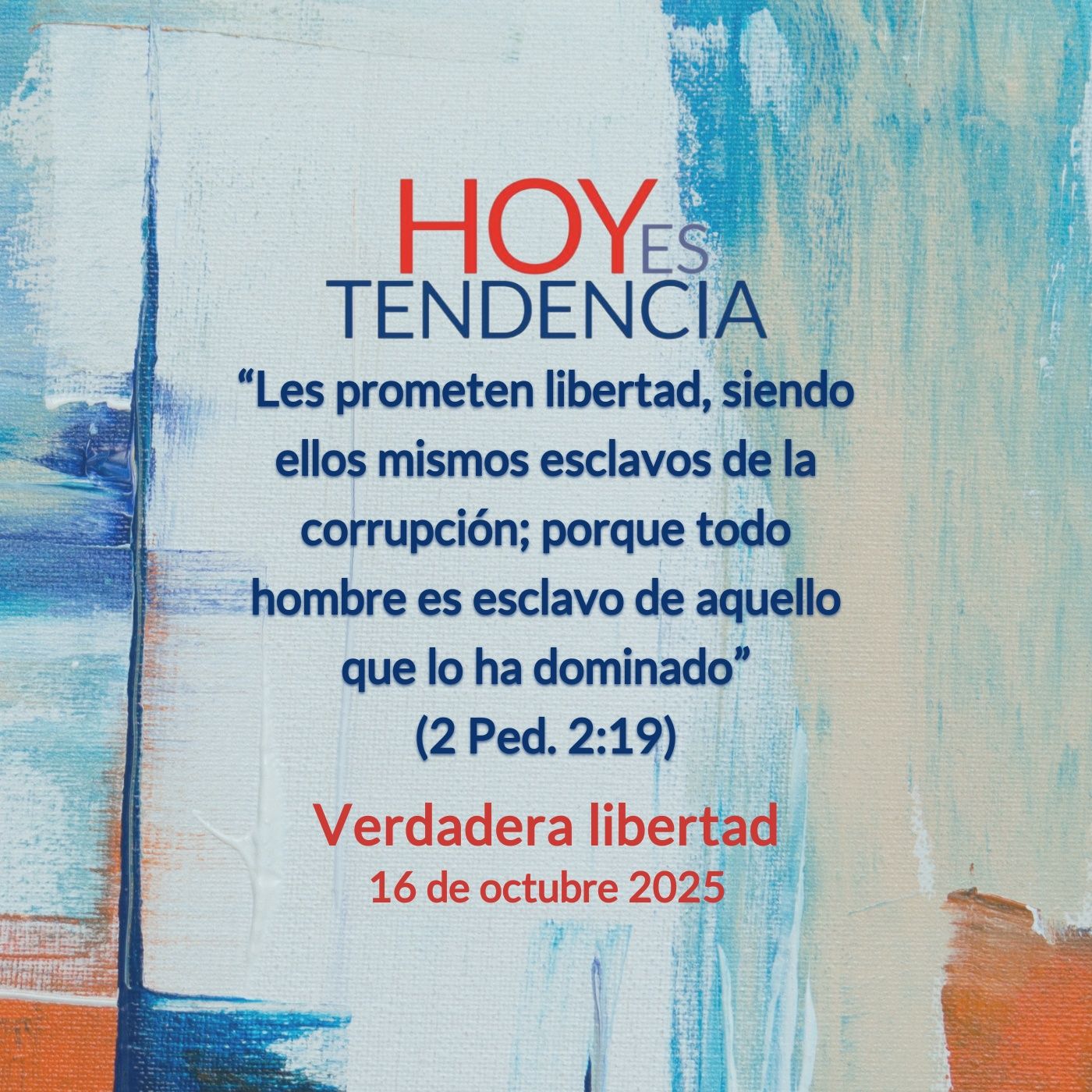 “Les prometen libertad, siendo ellos mismos esclavos de la corrupción; porque todo hombre es esclavo de aquello que lo ha dominado” (2 Ped. 2:19)