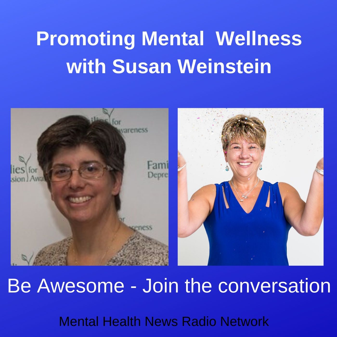 Susan Weinstein is the Co-Executive Director of Families for Depression Awareness, a national nonprofit organization that helps families and friends recognize and cope with depression and bipolar disorder to get people well and prevent suicides. The organization provides education, outreach, and advocacy to support families. Families for Depression Awareness is made up of families affected by depression or bipolar disorder or who have lost a loved one to suicide.