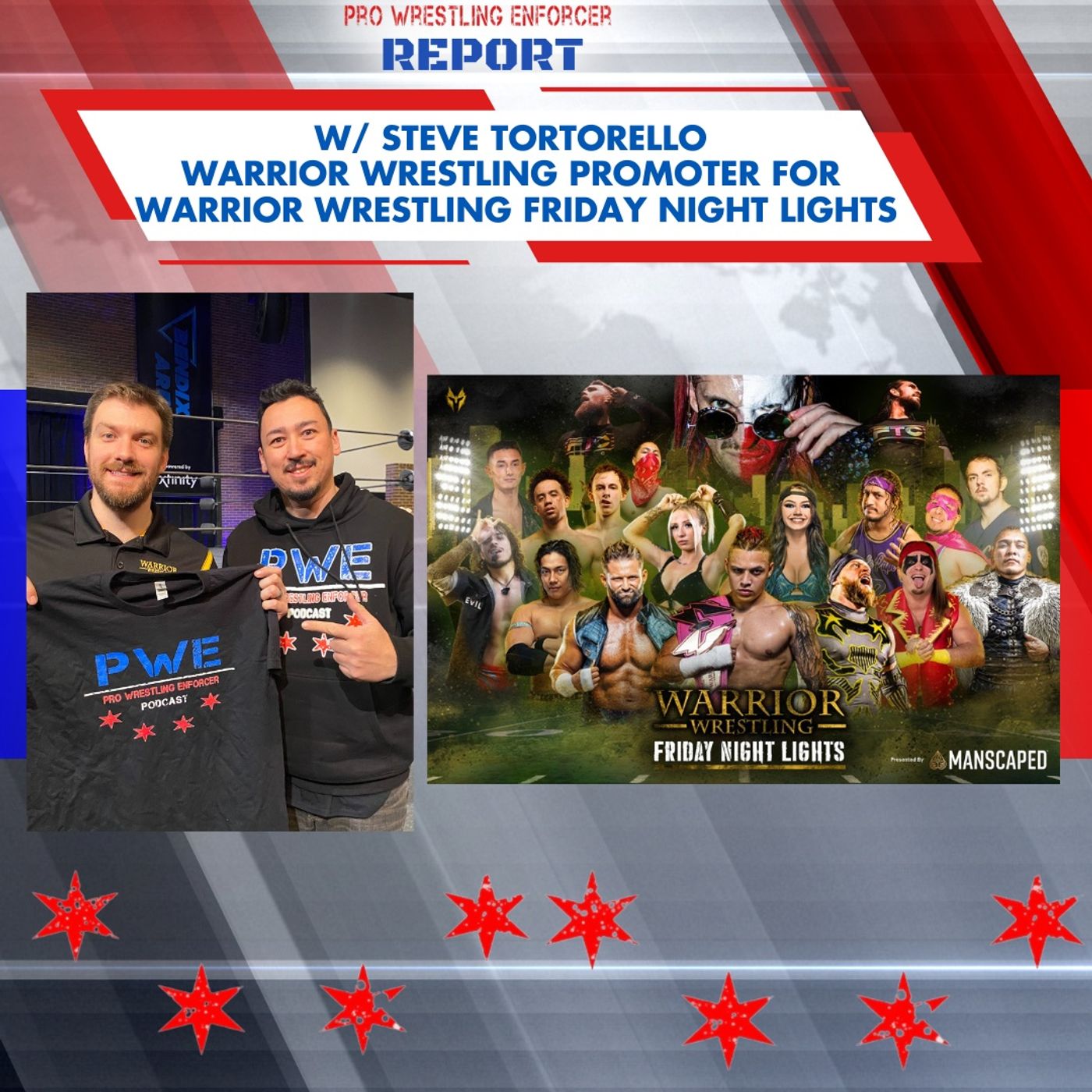 Host Sean Lennon welcome Principle Steve Tortorello back on PWE Report to discuss the upcoming Warrior Wrestlin Friday Night Lights the final event happening at Marion Catholic Highschool in Chicago Heights, IL. Featuring Stars of AEW like El VIkingo Del Hijo, Konosuke Takeshita, and Skye Blue plus Former WWE Superstar Matt Cardona, Chicago's Gringo Loco, The Bang Bros, Storm Grayson and more!