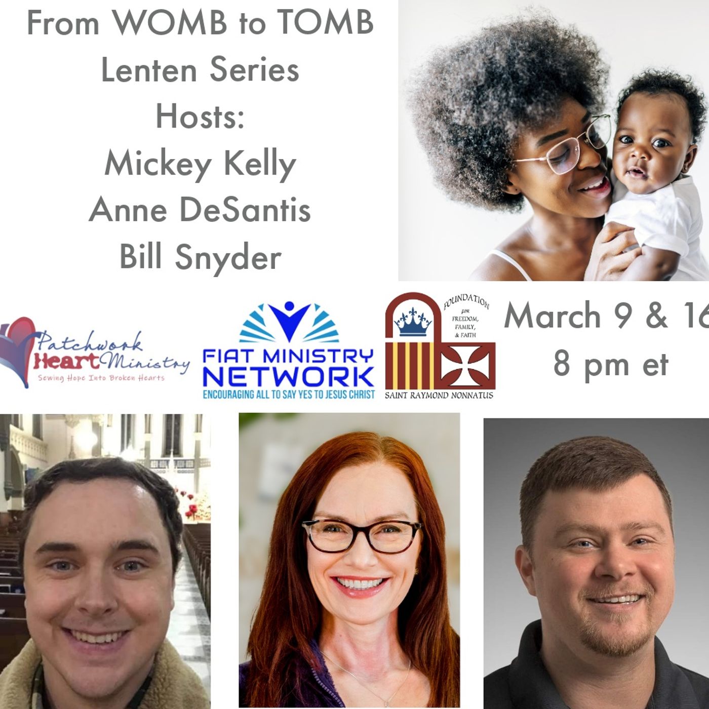 Anne DeSantis (director) and Mickey Kelly (president) of the St. Raymond Nonnatus Foundation join Bill Snyder, founder of Patchwork Heart Ministry for part one of a two-part pro-life conversation. The focus of part one is safeguarding the right to life of pre-born infants in the womb. Donate to Patchwork Heart Ministry
