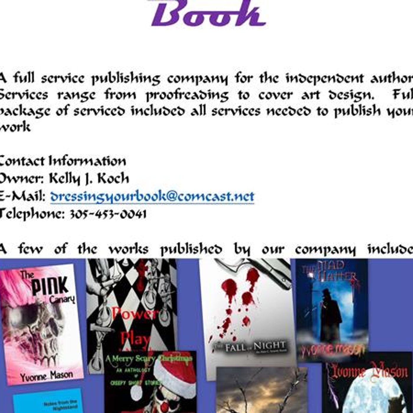 Tonight's show is quite ecelctic. I have not one but two great guests on my show. The first guest is Kelly J Koch with Dressing Your Book. She is also my co-host for the night. We will dig into her publishing business in the second hour - From 8-9 we will be talking to Madeline Robinson with Wheelchairs for Kids, a non-profit foundation for children with disablities. This foundation is located on the West Coast of Florida and let me tell you they do a great job getting chairs and ramps for homes of these children and their families. Madeline Robinson has worked in the non-profit sector in a management or executive position for the past 18 years.Madeline started Wheelchairs 4 Kids in 2011 when she saw a gap in the system that was not being filled. She lives by the motto of “They can’t say yes if you don’t ask!” Dressing Your Book Bio Kelly J. Koch has been an avid reader all of her life. So when she was given the opportunity to read some written by a friend of hers she, of course, jumped at the chance. Upon reading the books she noticed some errors in the books, as all books seem to have now, even those from the major authors. After speaking with the author she was asked to proofread and edit the books for the author. That is how it all began.
