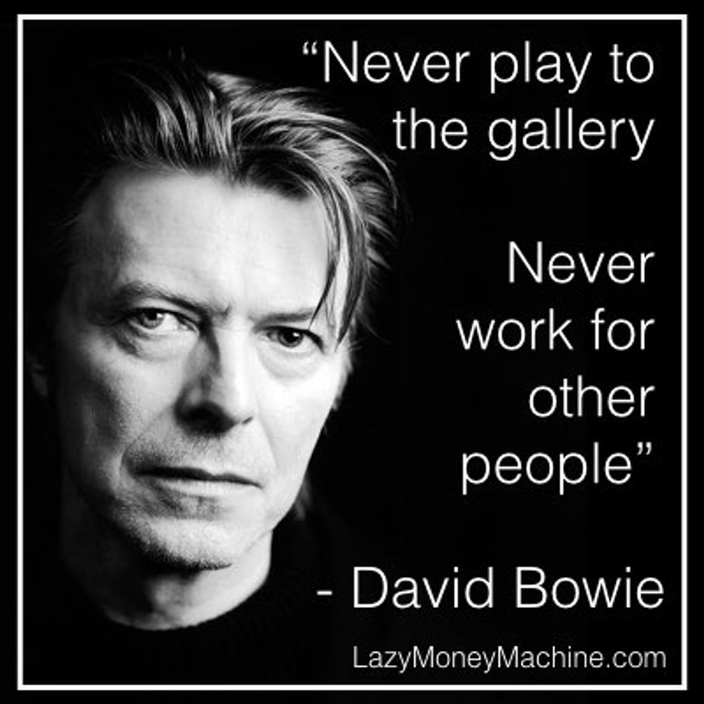 "Never play to the gallery, never work for other people, always remember that the reason you initially started working was that there was something inside yourself that you felt that if you could manifest it in someway you would understand more about yourself and how you coexist with the rest of society.