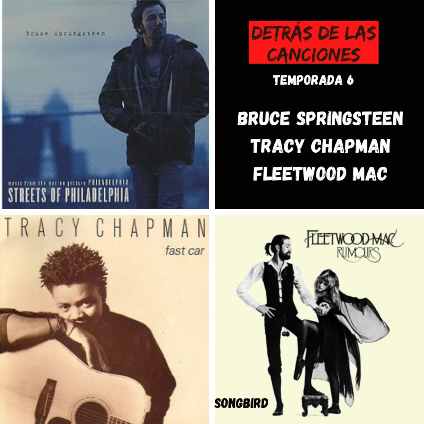 Hola!! Te doy la bienvenida a la emisión número 57 de este gran podcast en el que te cuento todo lo que siempre quisiste saber sobre las canciones que marcaron tu vida. En esta ocasión viajaremos hasta el año 1993 para descubrir la historia detrás de "Streets of Philadelphia", la canción de Bruce Springsteen que le puso música a la película “Philadelphia” protagonizada por Tom Hanks quien interpreta a un abogado gay que es despedido de un bufete por ser portador del virus del SIDA. También viajaremos al año 1988 para descubrir como se compuso y se grabó “Fast Car”, la canción que llevó al estrellato a la gran Tracy Chapman. Y por último nos detendremos en el año 1977 para contarte como fue que se grabó “songbird”, la hermosa canción compuesta por la querida Christine Mc Vie para el álbum “Rumours” de Fleetwood Mac, una de las canciones de amor más hermosas que se hayan escrito jamás. Si te gustó el episodio y querés colaborar económicamente lo podés hacer desde Argentina: https://cafecito.app/podcanciones O desde el exterior: PayPal.Me/podcast486 Seguime en IG @podcanciones y entérate antes que nadie las novedades del podcast!