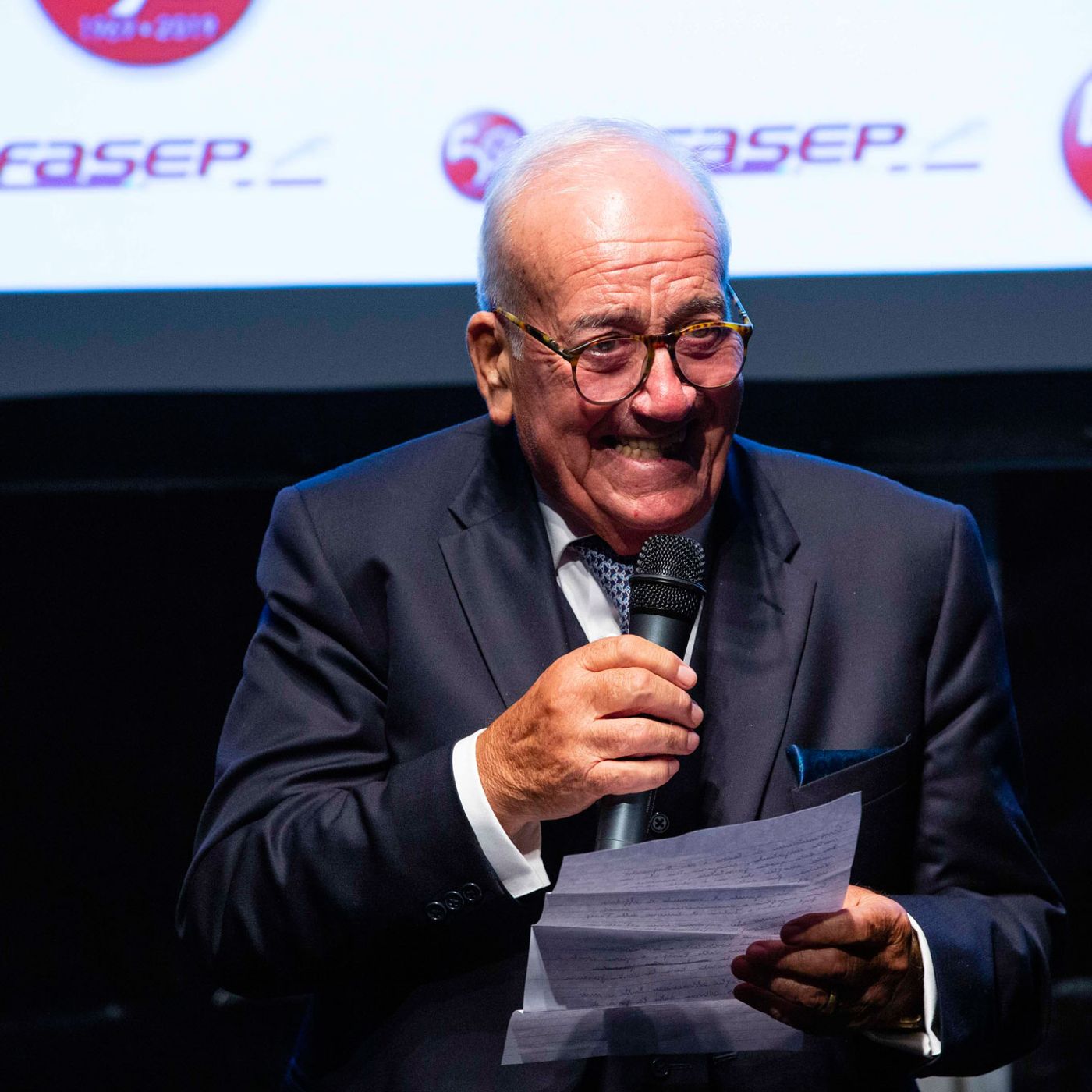 Il ringraziamento emozionato di Fulvio Boni durante la festa del 50esimo anno di attività dell'azienda Fasep di Ronta a Borgo San Lorenzo (FI).