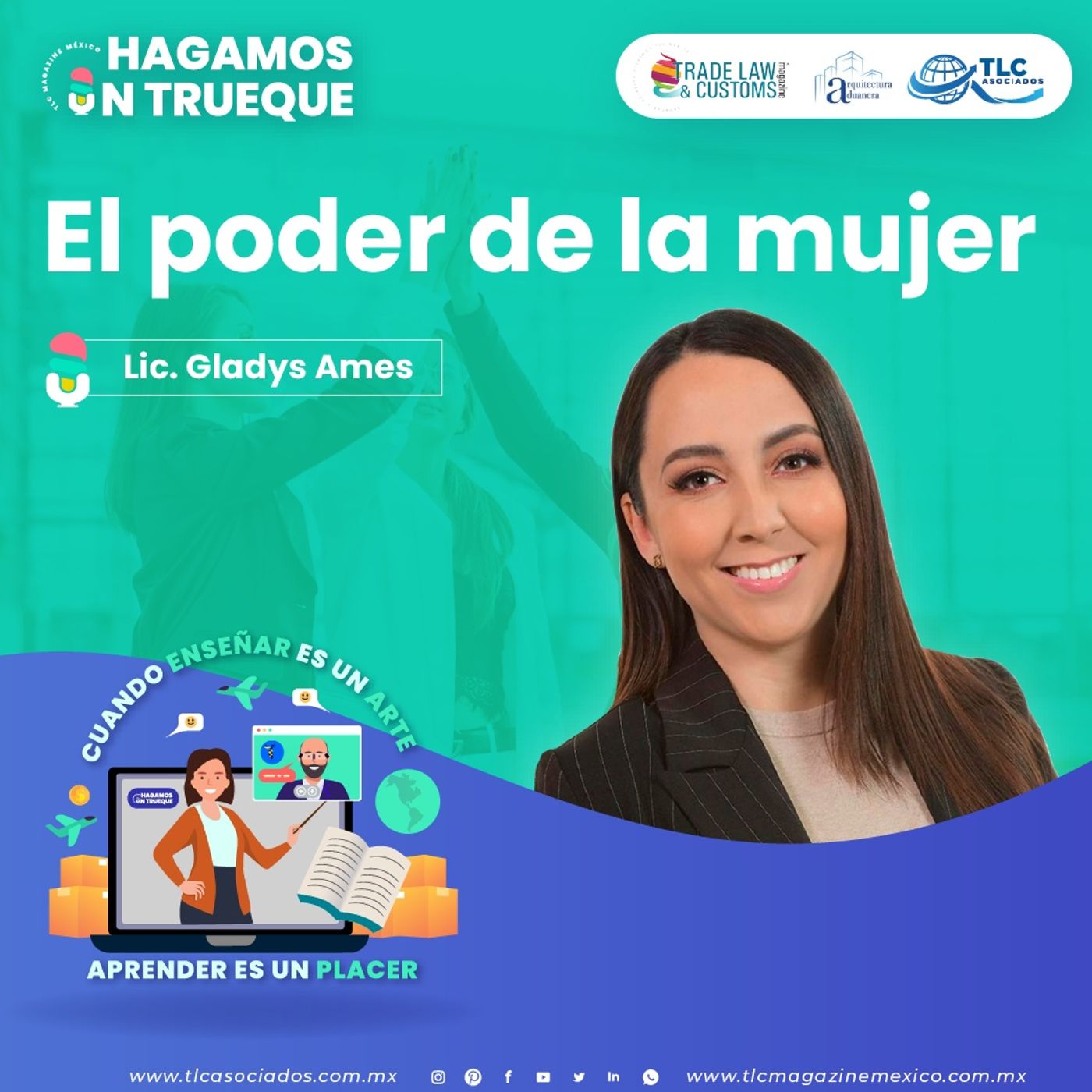 La Presidenta de Más Mujeres de Poder, Lic. Gladys Ames, te invita a escuchar el Poder de la Mujer, ya sea en comercio exterior, aduanas, fiscal, negocios, etc. Por lo que no debes perderte el Trueque.