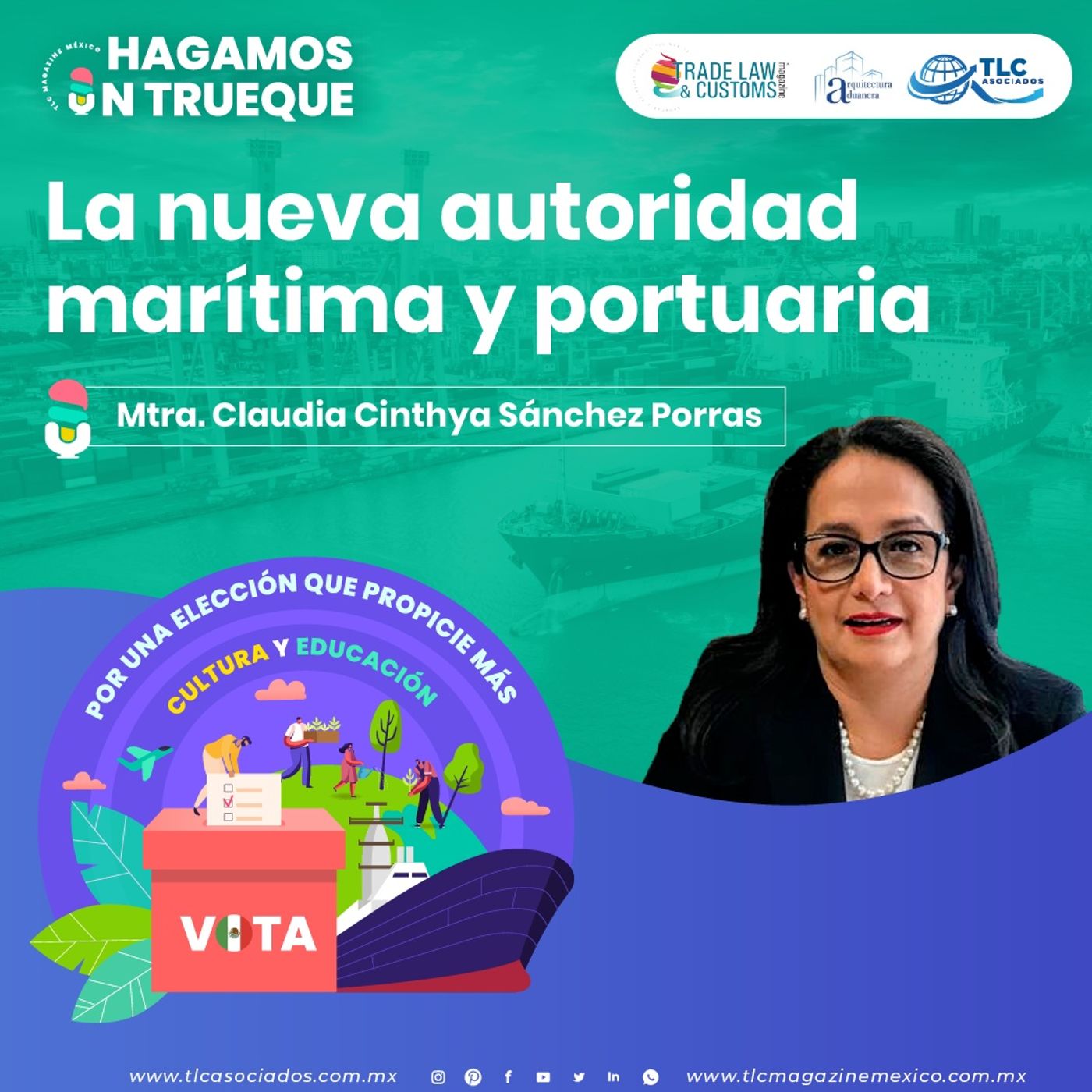 La Nueva Autoridad Marítima Portuaria es el tema que nos presenta la Mtra. Claudia Sánchez Porras, Presidenta de la Asociación Mexicana de Infraestructura Portuaria, Marítima y Costera (AMIP) y ex Directora General de Puertos de la SCT. ¡Dale play!