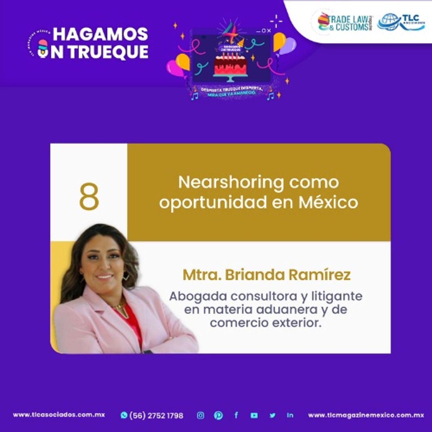 Recuerda ser muy puntual al evento, pues la Mtra. Brianda Ramírez, Abogada consultora y litigante en materia aduanera y de comercio exterior.,nos tiene preparada una imperdible presentación.