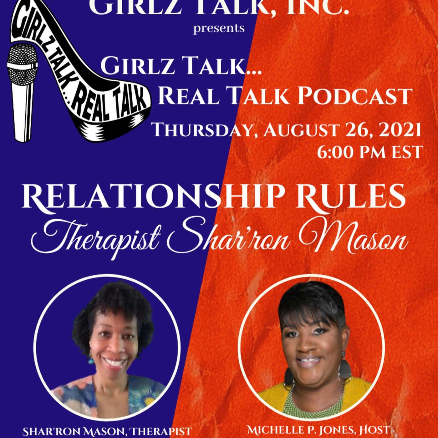 Join in as the Girlz Talk... Real Talk Podcast welcomes Relationship Therapist Shar'ron Mason. During the show, we will discuss how to heal from a bad breakup and deal with the emotional scars left behind. Being single again is not a death sentence. It is an opportunity to rebuild and live your best life. Listen in as we share tips and tools necessary to live, heal and love after a bad breakup. Tune in for another exciting and informative conversation on the importance of healing after a bad breakup or loss of a loved one during the Girlz Talk... Real Talk Podcast LIVE stream on Facebook and YouTube. #RelationshipRules #Survivingabadbreakup #YourEmotionalHealthMatters #SharronMason #RelationshipTherapist #Breakups #GirlzTalkRealTalkPodcast #Podcasts #PodcastLife #EmotionalScars #RelationshipTipsandTools #Singleness #Rebuild #Heal #Live #Love #ReleaseRelateBeginagain #Forgive Podcast owned by Girlz Talk, Inc. | Host: Michelle P. Jones | email: GTRT2018@gmail.com | website: http://bit.ly/GirlzTalk --- Send in a voice message: https://anchor.fm/unapologetically-michelle/message