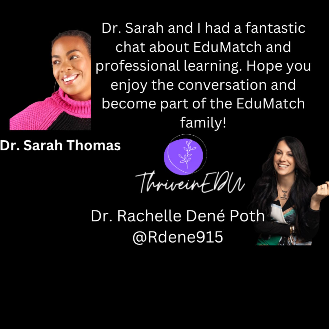About Dr. ThomasSarah Thomas, PhD is the founder of EduMatch, an organization that empowers educators to make global connections across common areas of interest. She has spoken and presented internationally, participated in the Technical Working Group to refresh the 2017 ISTE Standards for Educators, and is a recipient of the ISTE Making IT Happen award. Sarah is a co-author of the ISTE digital equity series, Closing the Gap, and the winner of the 2023 Maryland Society for Educational Technology Outstanding Leader Using Technology award.En Francais:Sarah Thomas, PhD est une <<Regional Technology Coordinator>> dans le comté écoles publiques de Prince George dans le Maryland aux États Unis. Elle est aussi certifiée Innovator et Entraîneuse de Google et la fondatrice du mouvement EduMatch, un projet qui permet aux éducateurs d'établir des connexions mondiales à travers les zones d'intérêt commun. Elle a présenté au niveau international, participé au Groupe de travail technique pour rafraîchir les normes 2017 ISTE pour les éducateurs et est récipiendaire du prix ISTE Making IT Happen de 2017. En espanol:Sarah Thomas, PhD es Coordinadora Regional de Tecnología de las escuelas públicas en el Distrito Prince George. Cuenta con los certificados de Google Certified Innovator, Google Education Trainer. Fundadora del movimiento EduMatch, proyecto que empodera a los educadores a tener conexiones globales de sus áreas de interés. Se ha presentado internacionalmente, participado en el grupo Technological Working para actualizar los Estándares Educativos de ISTE para 2017, es ganadora del premio 2017 ISTE Making IT Happen.