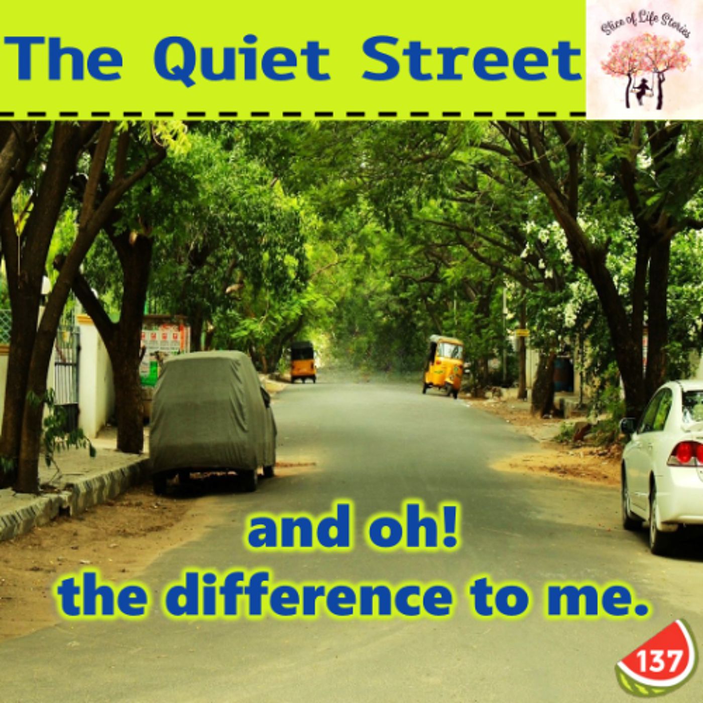 The Quiet Street #Podcast - and oh! the difference to me. #QuietStreet #OldHouse #Traffic #Busy #Thoroughfare #NewFamily #SpecialNeeds #OldTrees #StreetDogs #Rainbow #Wheelchair #GermanShepherds #Gentlemanly #EveryMorning #EveryEvening #SecretSignal #FirstDay #Radiance #DailyMiracle #Dignity #FoodAndDrink #Message #Music #Sober #SweetFriend #LittleGirl #PersonalChallenges #WonderfulJoy #MissHerForever Music : @MarisVijay Studio Recording : @trinitywaves2487 @SliceOfLifeStories - Written and Narrated by Tehnaz Bahadurji For more story updates follow us @ Soundcloud : https://soundcloud.com/sliceoflifestories Spotify : https://open.spotify.com/show/2Gina4RpRz6u3Qn9uYIKOp iTunes :https://podcasts.apple.com/in/podcast/slice-of-life-stories/id1358225468?mt=2 Instagram : https://www.instagram.com/sliceoflifestories/?hl=en Facebook : https://www.facebook.com/sliceoflifestories/ Twitter : https://twitter.com/sliceoflife466 Subscribe and Stay Tuned !