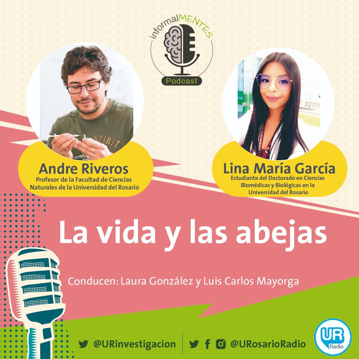 Las abejas son animales tan hermosos como necesarios para la vida. Su trabajo silencioso, pero constante, hace que nuestro estilo de vida pueda ser posible. Aun así, ¿eres consciente de la importancia de las abejas dentro de nuestra sociedad? En InformalMENTES buscamos a Andre Riveros, profesor de la Facultad de Ciencias Naturales de la Universidad del Rosario, y Lina María García, estudiante del Doctorado en Ciencias Biomédicas y Biológicas de la misma universidad, para que nos cuenten sobre sus investigaciones con estos pequeños animales polinizadores.