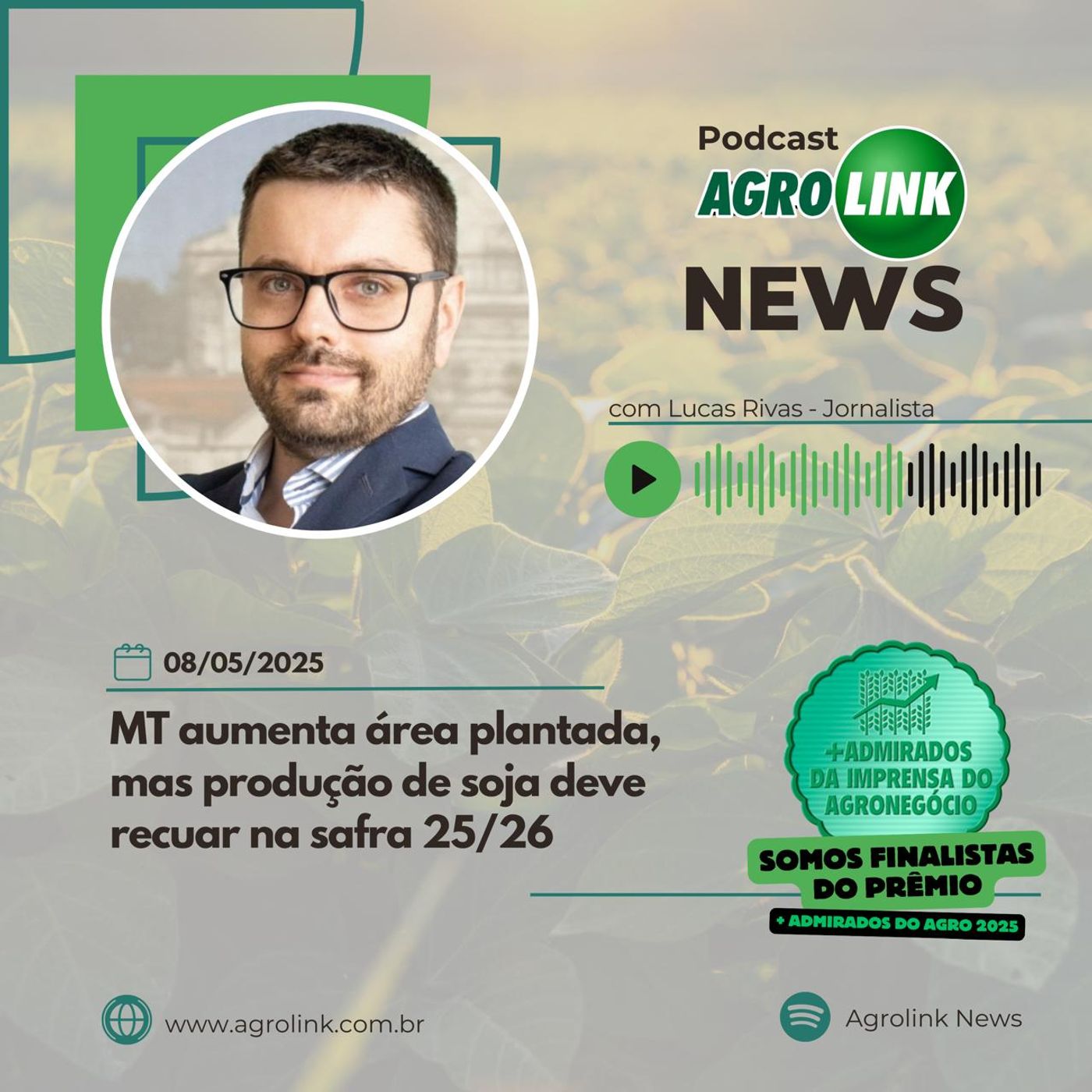 Estimativa do IMEA aponta queda de 7,29% na safra de soja 25/26 em Mato Grosso, mesmo com maior área plantada. Navio chinês descarrega mais de 78 mil toneladas de fertilizantes no porto de Paranaguá, marcando novo recorde do setor. Governo federal anuncia retorno de escritório da Embrapa em países da África. Produtores de Minas Gerais tem até 30 de junho para informar número de animais nas propriedades. Tempo: temporais ganham intensidade no Rio Grande do Sul.