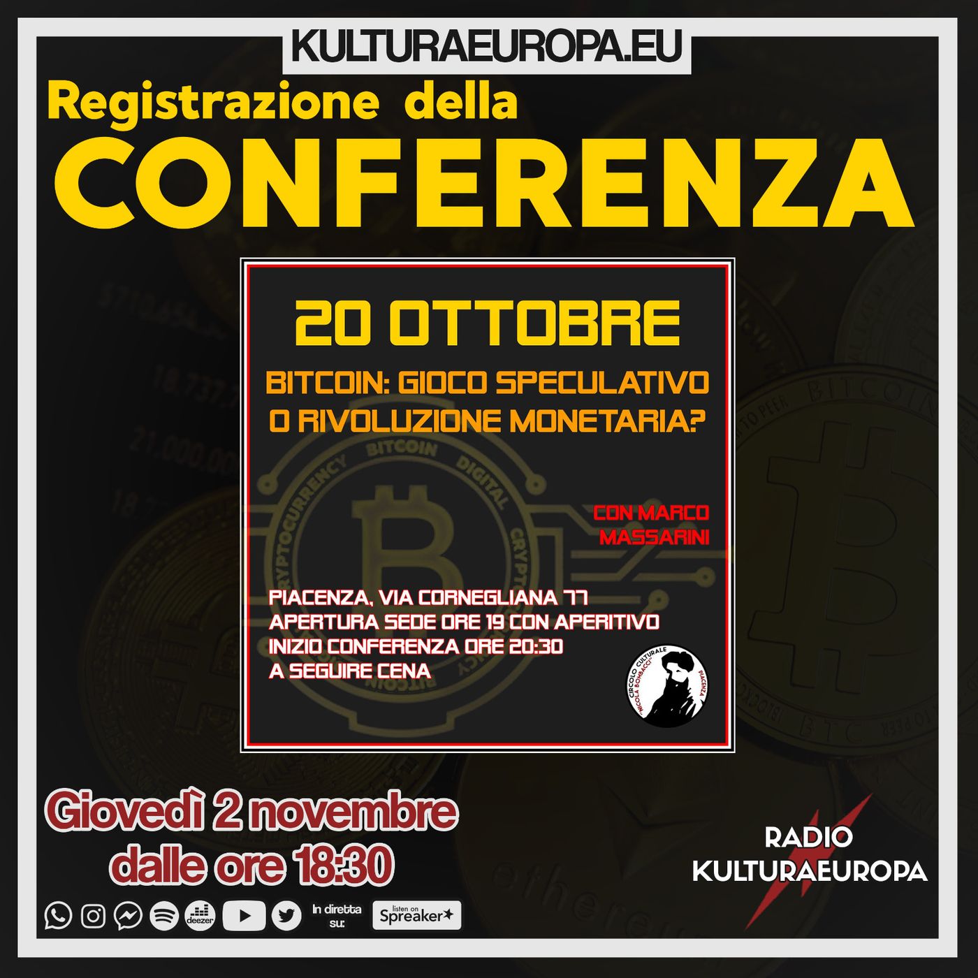 Registrazione conferenza bitcoin: gioco speculativo o rivoluzione monetaria?