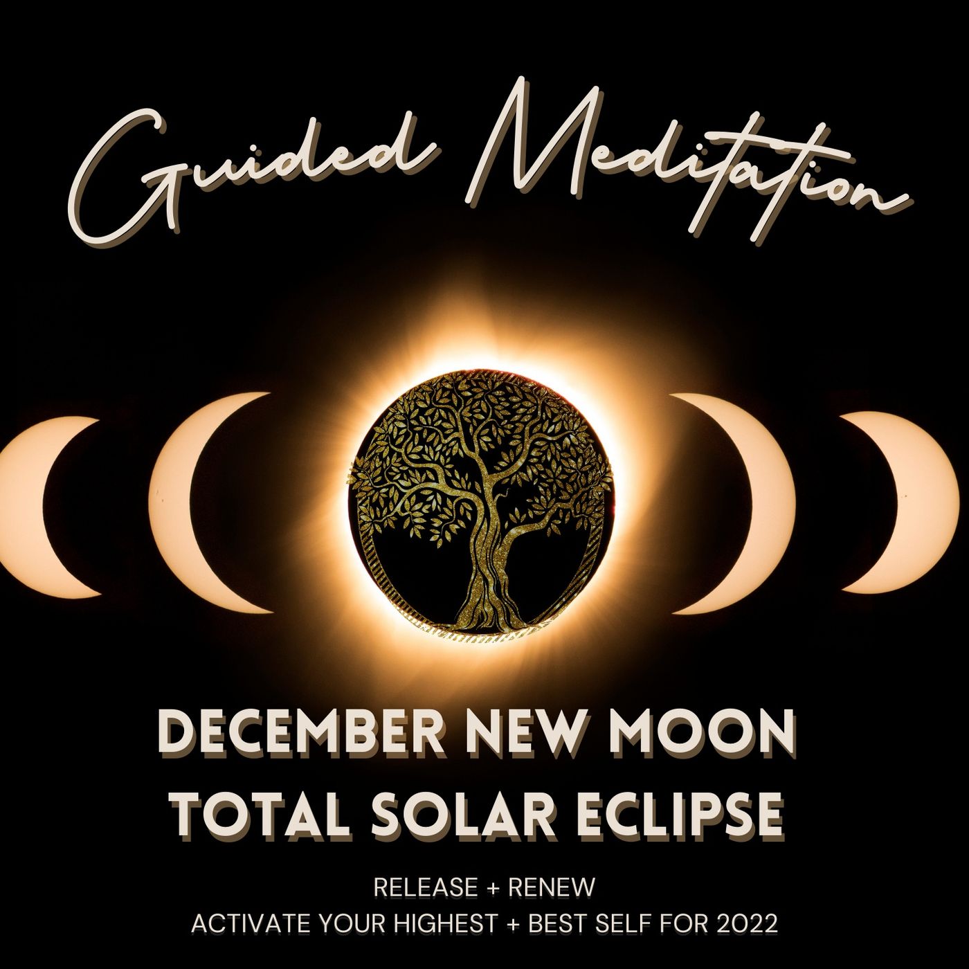 I guide you on a journey of grounding through the power of your very own Tree of Life, which holds all of your Soul's Wisdom. Next, releasing whatever is no longer serving you whether you are aware of it or not. You will be guided to harness the powerful and potent energies of the moon and sun as they dance under the New Moon to create a Total Solar Eclipse; activating your Soul's Wisdom, your intuition, elevating your consciousness and activating your connectivity to yourself, others and all things greater. Fully embodying your best self.