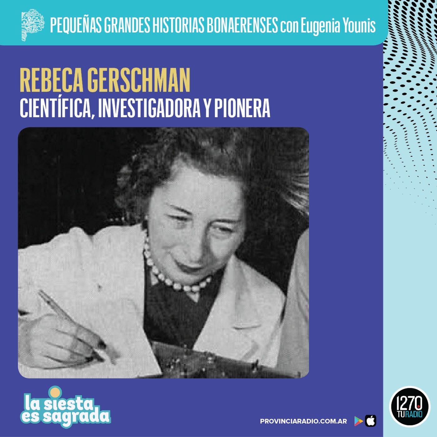 Eugenia Younis hoy te cuenta “Rebeca Gerschman, científica, investigadora y pionera” en su columna “Pequeñas Grandes Historias Bonaerenses”, por Radio Provincia, AM 1270.