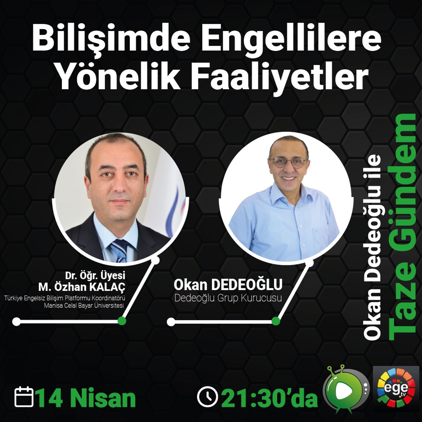 Okan DEDEOĞLU ile Taze Gündem Kanalımızda ‘’Bilişimde Engellilere Yönelik Faaliyetler’’ konusunu konuştuk. Uzman konuğumuz; ‘Türkiye Engelsiz Bilişim Platformu Koordinatörü Manisa Celal Bayar Üniversitesi Dr. Öğr. Üyesi M.Özhan KALAÇ’’