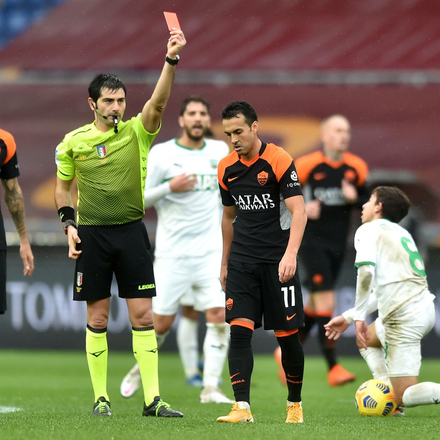 Roma-Sassuolo entra nella storia come la partita in cui Pedro ha ricevuto la sua prima espulsione in 351 partite tra Liga, Premier League e Serie A.