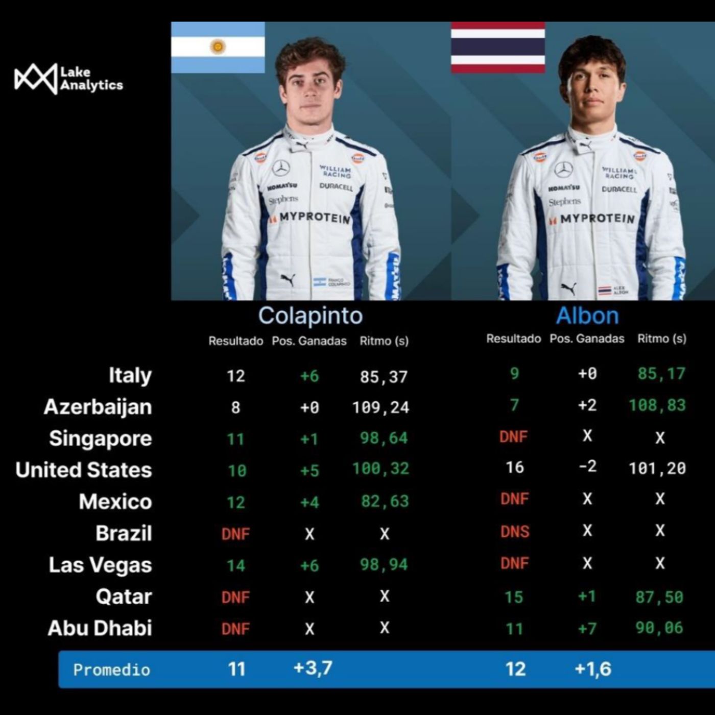 Lucas Corsino, fundador de Lake Analytics, realizó un informe de 75 páginas sobre el desempeño de Franco Colapinto en la Fórmula 1. ¿Qué destacó al argentino en sus nueve carreras con Williams y qué futuro tiene según los datos? La respuesta en esta entrevista.