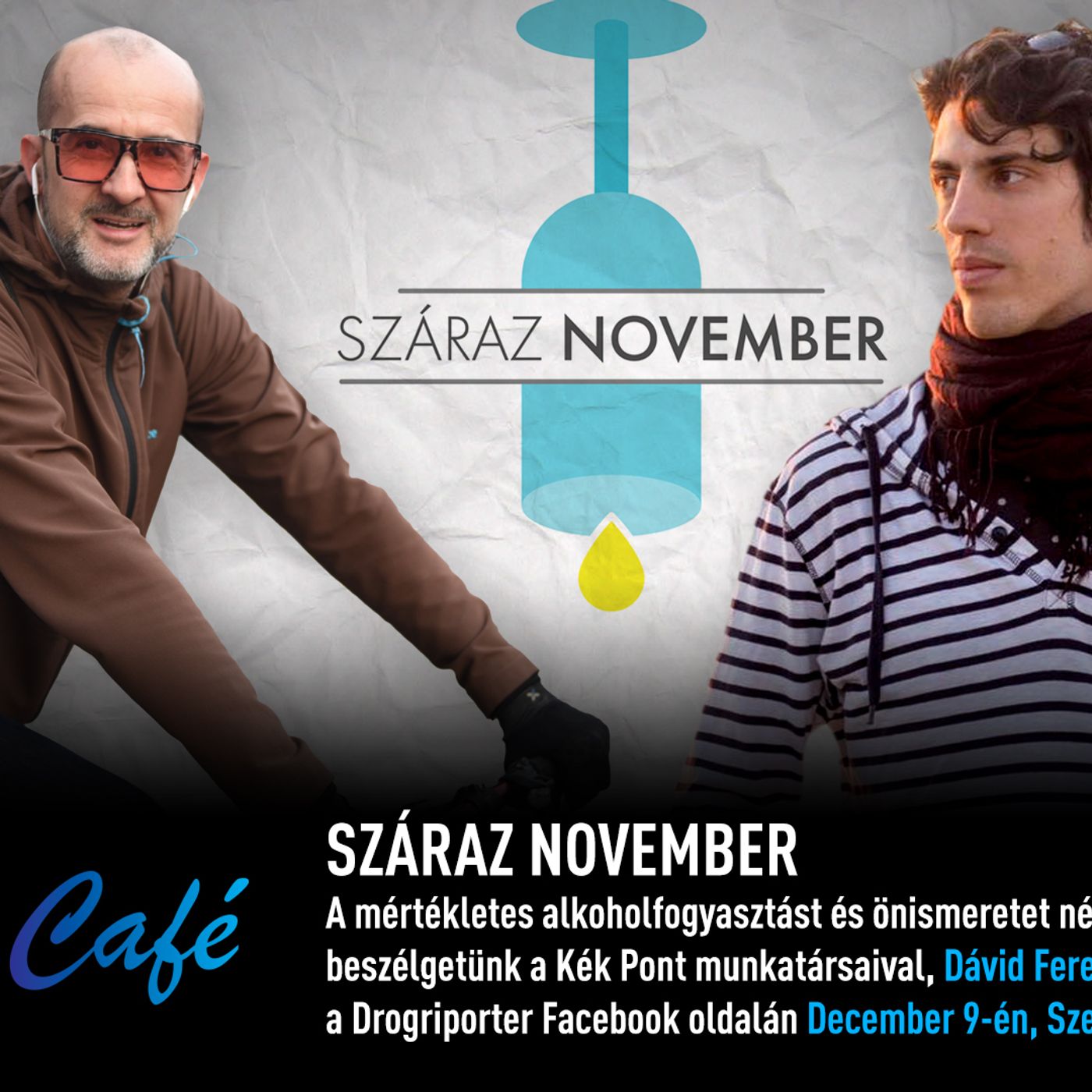 A mértékletes alkoholfogyasztást és önismeretet népszerűsítő kampányról beszélgetünk a Kék Pont munkatársaival, Dávid Ferenccel és Pelbát Gergellyel a Drogriporter drogpolitikai hír és beszélgetős műsorában a Drogriporter Cafén! A kommentekben tudtok kérdezni vendégeinktől!