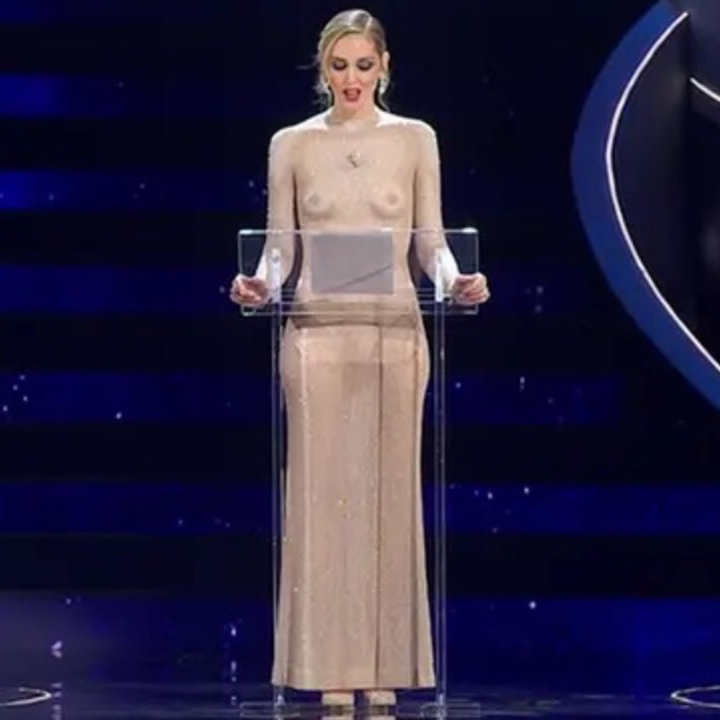 La clip in sottofondo è un breve estratto del monologo di Chiara Ferragni al Festival di Sanremo 2023 all rights reserved alla Rai, compresi quelli dell’immagine