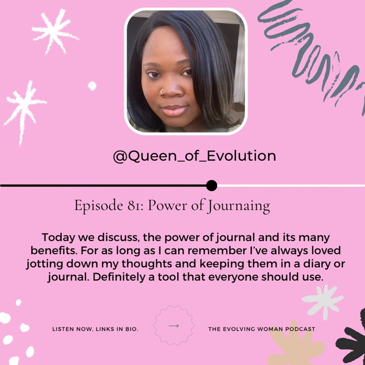 Hey everyone and welcome back to another episode on The Evolving Woman. Today we discuss, the power of journal and its many benefits. For as long as I can remember I’ve always loved jotting down my thoughts and keeping them in a diary or journal. Definitely a tool that everyone should use. If Remember to subscribe and like the podcast and share with others.