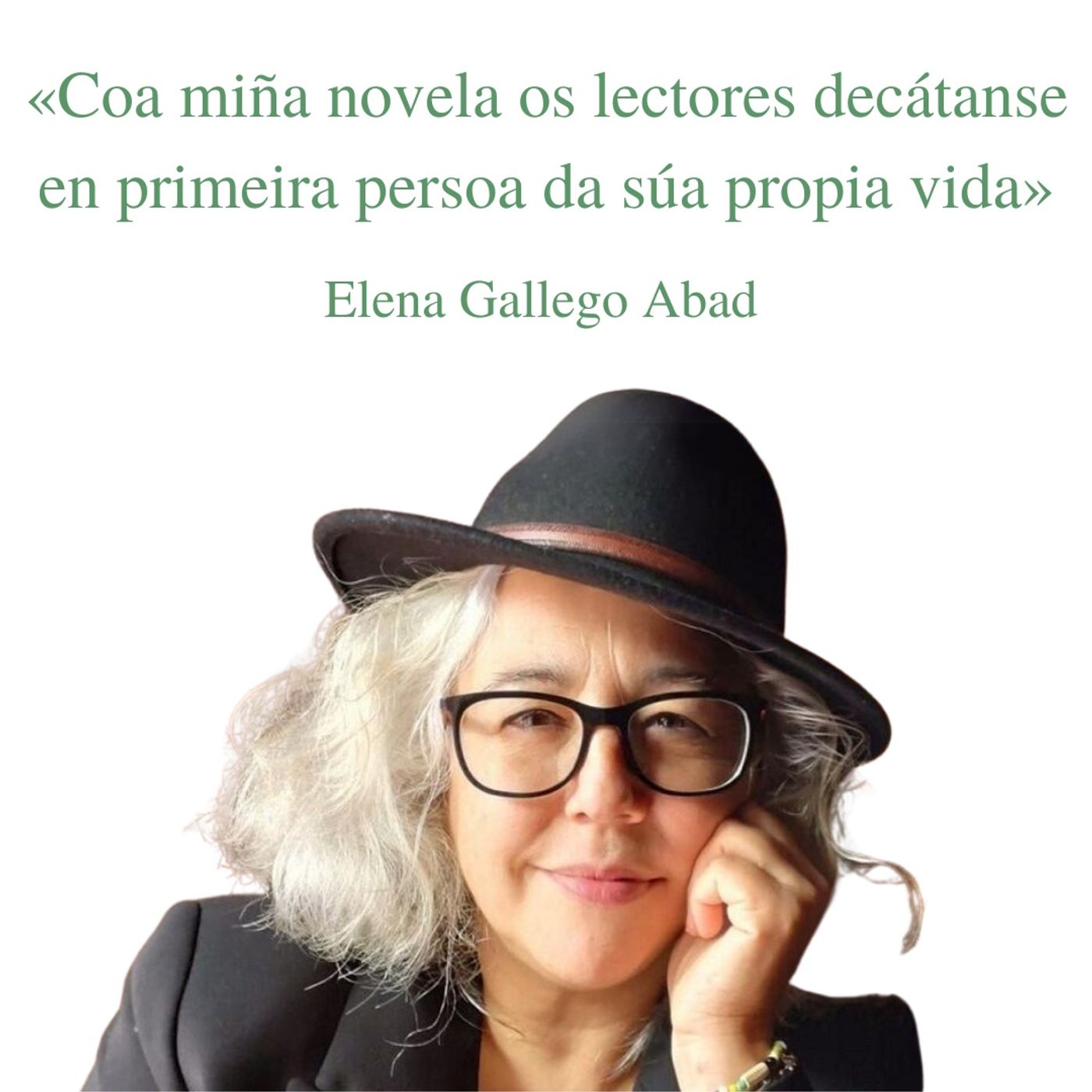 Elena Gallego Abad é escritora, xornalista e autora da novela O legado da nena do Sal, que conta a historia vivida por Camiña de Colosía, a nai da autora, cando nos anos 30 quedou orfa e foi acollida por unha familia de Viveiro, un relato de supervivencia e que reflicte os duros anos da España de posguerra.