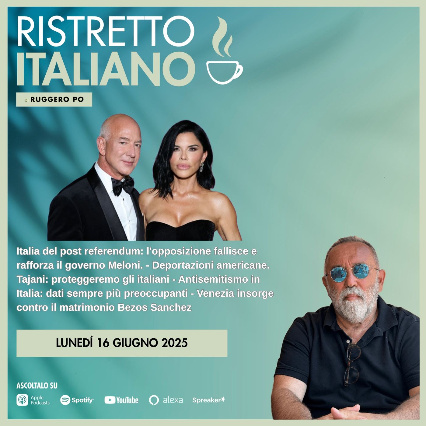 Italia del post referendum: l'opposizione fallisce e rafforza il governo Meloni. - Deportazioni americane. Tajani: proteggeremo gli italiani - Antisemitismo in Italia: dati sempre più preoccupanti - Venezia insorge contro il matrimonio Bezos Sanchez