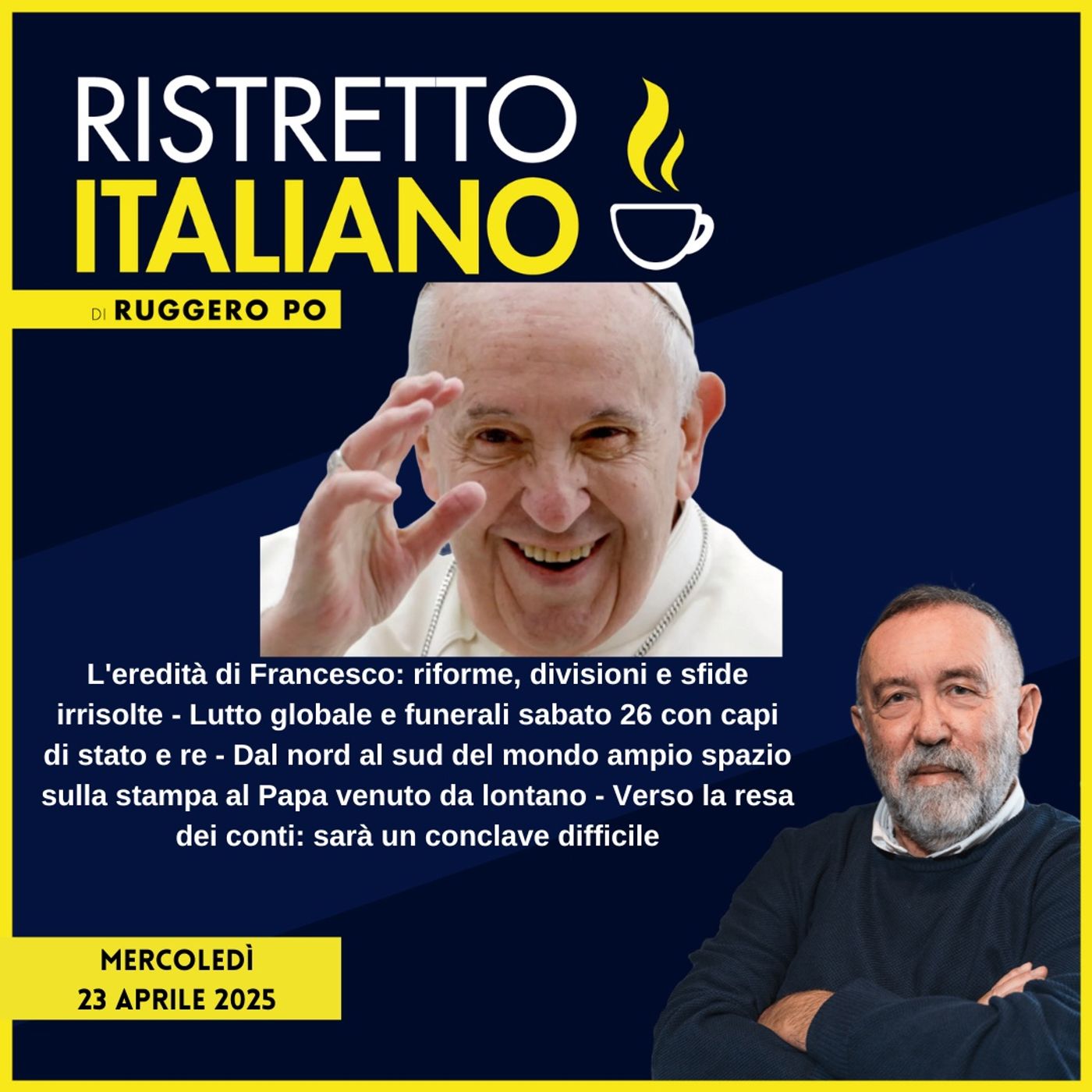 L'eredità di Francesco: riforme, divisioni e sfide irrisolte - Lutto globale e funerali sabato 26 con capi di stato e re - Dal nord al sud del mondo ampio spazio sulla stampa al Papa venuto da lontano - Verso la resa dei conti: sarà un conclave difficile