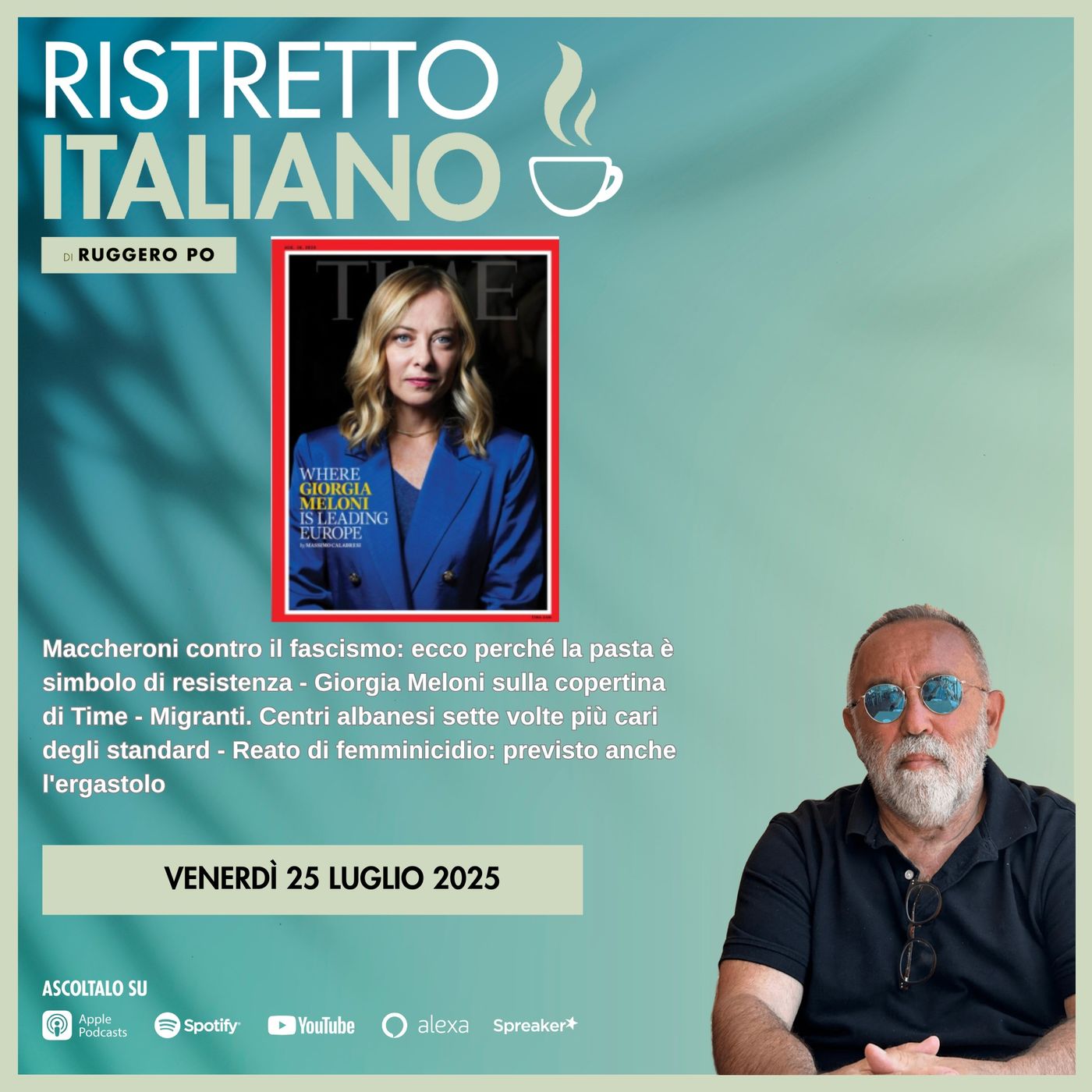 Maccheroni contro il fascismo: ecco perché la pasta è simbolo di resistenza - Giorgia Meloni sulla copertina di Time - Migranti. Centri albanesi sette volte più cari degli standard - Reato di femminicidio: previsto anche l'ergastolo