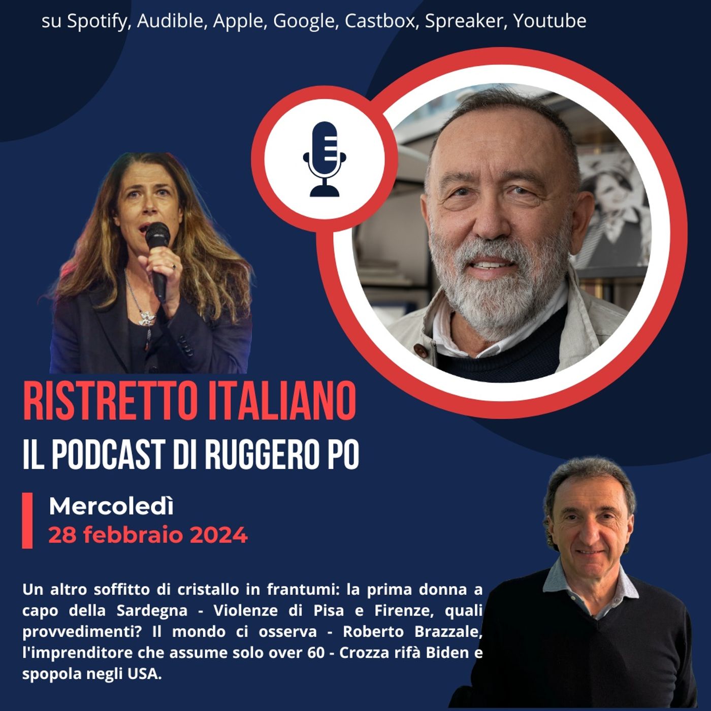 Un altro soffitto di cristallo in frantumi: la prima donna a capo della Sardegna - Violenze di Pisa e Firenze, quali provvedimenti? Il mondo ci osserva - Roberto Brazzale, l'imprenditore che assume solo over 60 - Crozza rifĂ Biden e spopola negli USA.