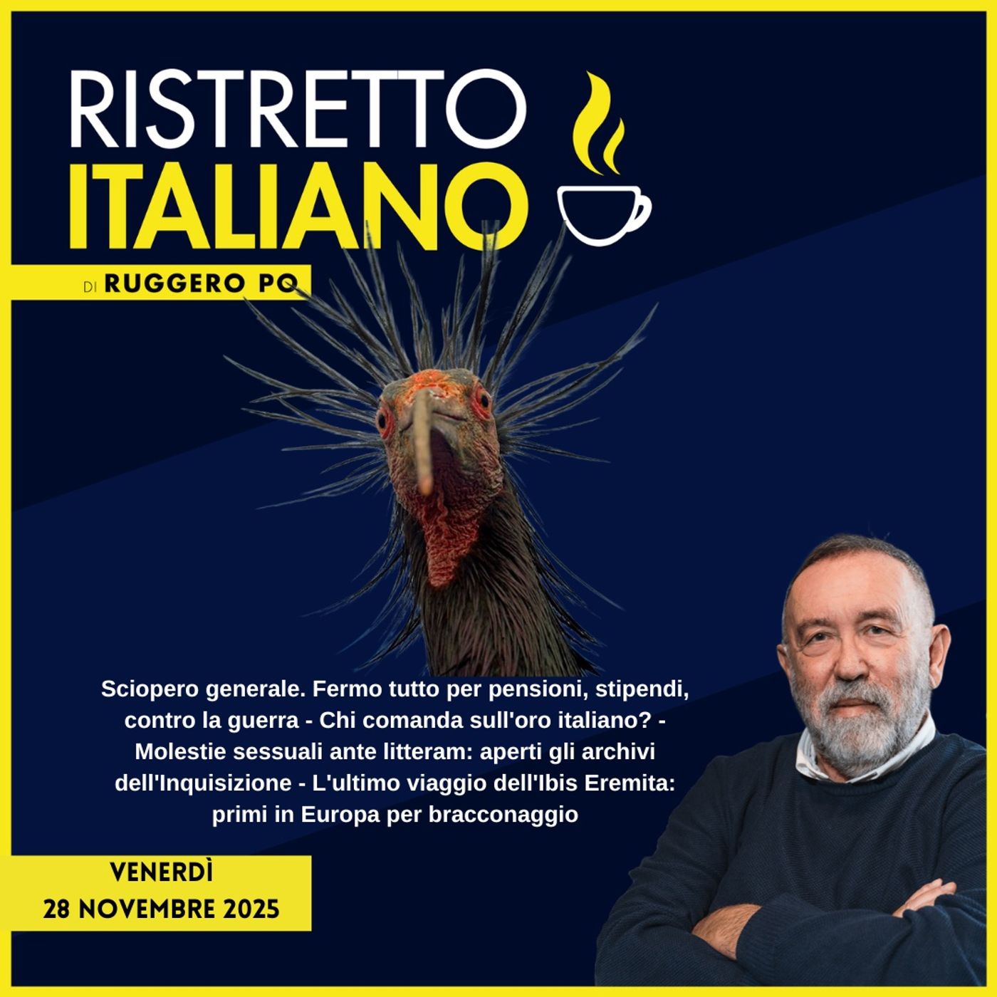 Sciopero generale. Fermo tutto per pensioni, stipendi, contro la guerra - Chi comanda sull'oro italiano? - Molestie sessuali ante litteram: aperti gli archivi dell'Inquisizione - L'ultimo viaggio dell'Ibis Eremita: primi in Europa per bracconaggio