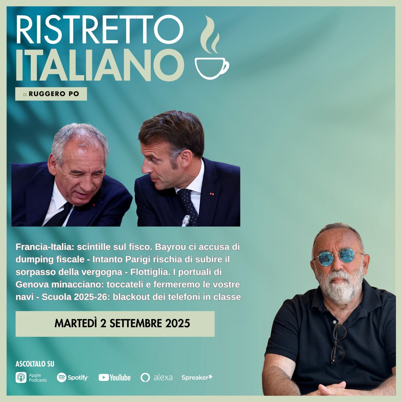 Francia-Italia: scintille sul fisco. Bayrou ci accusa di dumping fiscale - Intanto Parigi rischia di subire il sorpasso della vergogna - Flottiglia. I portuali di Genova minacciano: toccateli e fermeremo le vostre navi - Scuola 2025-26: blackout dei telefoni in classe