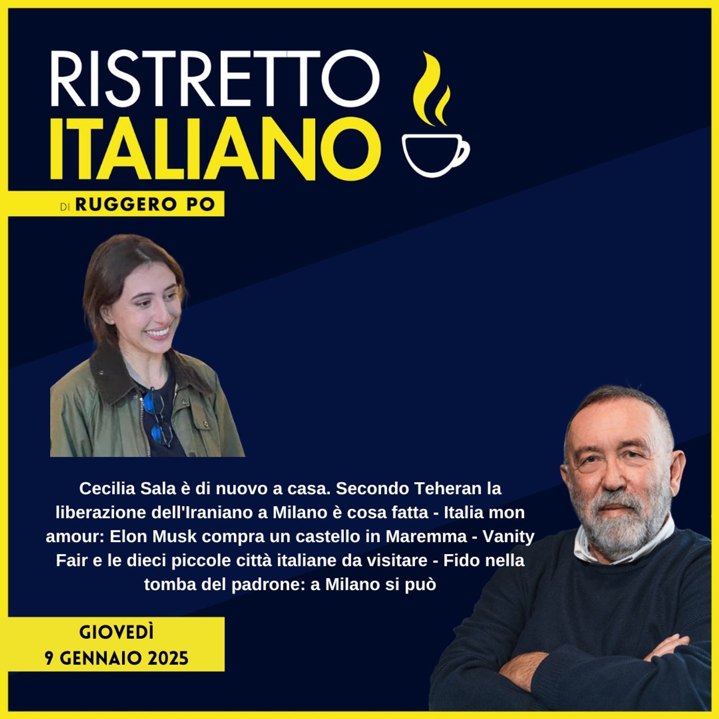 Cecilia Sala è di nuovo a casa. Secondo Teheran la liberazione dell'Iraniano a Milano è cosa fatta - Italia mon amour: Elon Musk compra un castello in Maremma - Vanity Fair e le dieci piccole città italiane da visitare - Fido nella tomba del padrone: a Milano si può